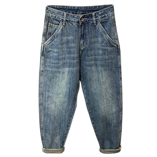 宽松直筒休闲百搭潮流老爹哈伦长裤 秋季 男士 复古加绒牛仔裤 子 美式