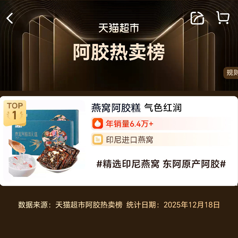 半山农燕窝阿胶糕200g 东阿即食手工孕妇滋补品送礼长辈 2盒正品