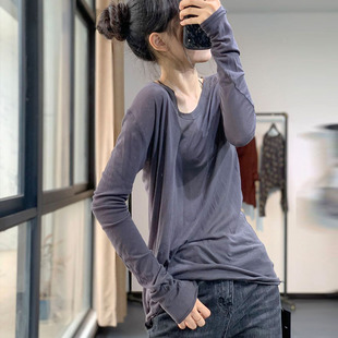 基础百搭不规则拼接纯色修身 韩版 高弹力打底T恤上衣女 夏季 古与色