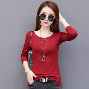 圆领长袖 莫代尔黑色打底衫 内搭秋衣大码 新款 春秋t恤 2023秋冬女装