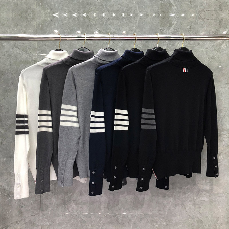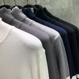 男女情侣同款 tb高领套头毛衣针织衫 打底衫 显瘦长袖 外穿 四条杠修身