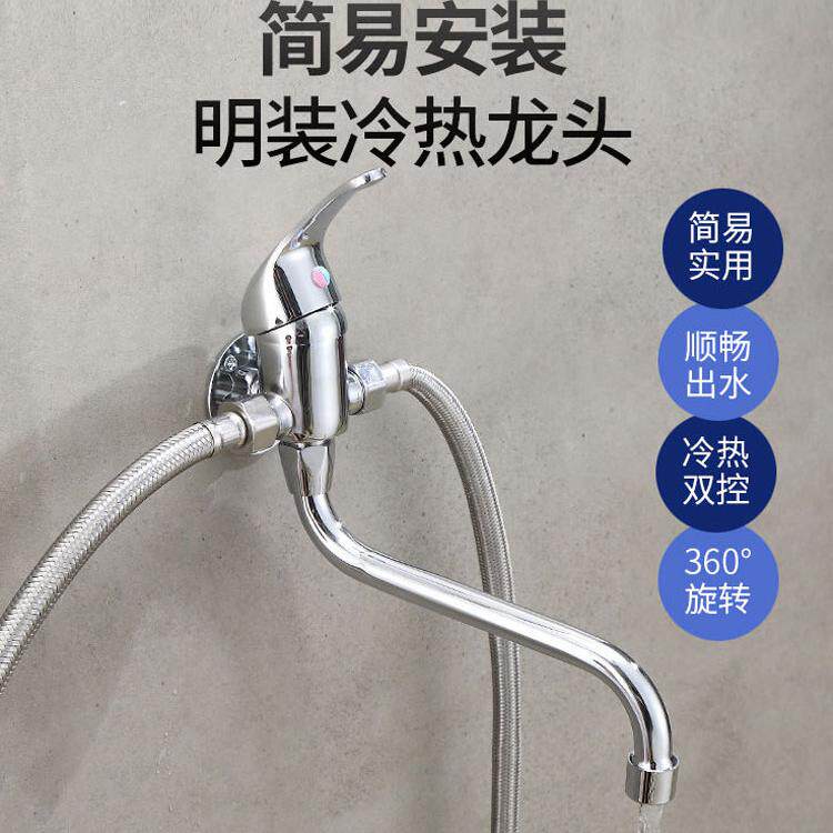 混水阀挂壁菜盆可旋转下出水 明装 厨房小厨宝冷热水龙头挂墙式 老式