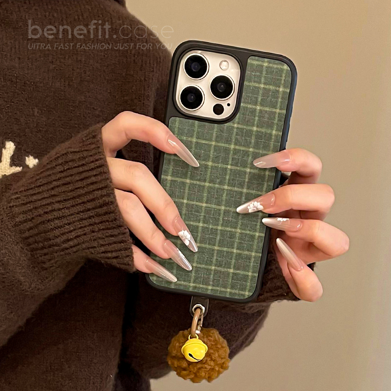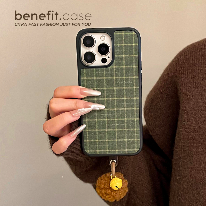 benefit文艺经典 14套12创意防摔 绿色格纹带铃铛毛球公仔17适用于iphone16promax苹果15PRO磁吸手机壳13新款