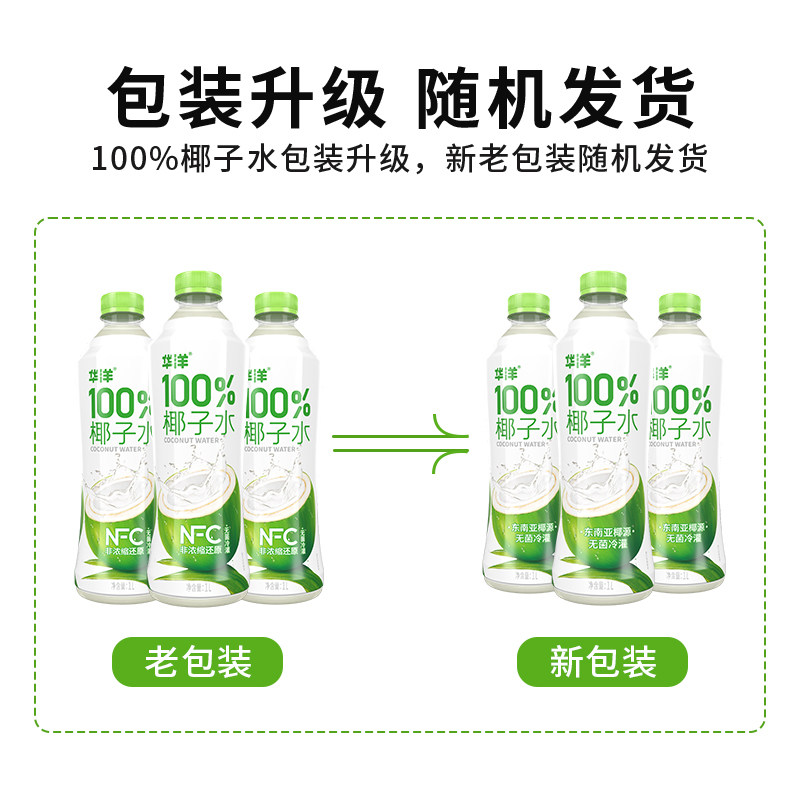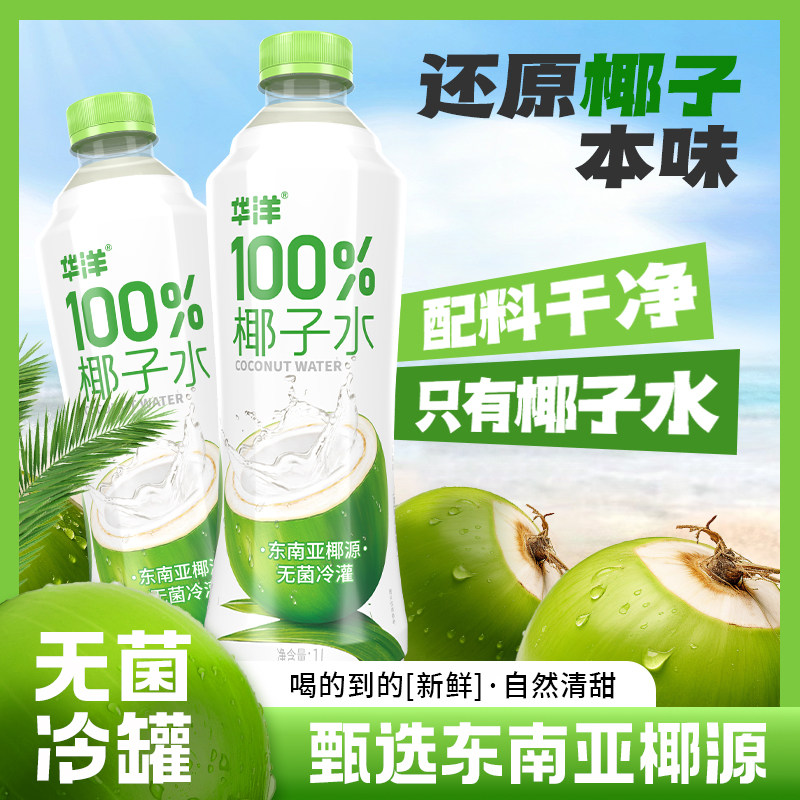 25年新品 6瓶0添加纯椰子汁非浓缩电解质饮料 华洋100%椰子水1L