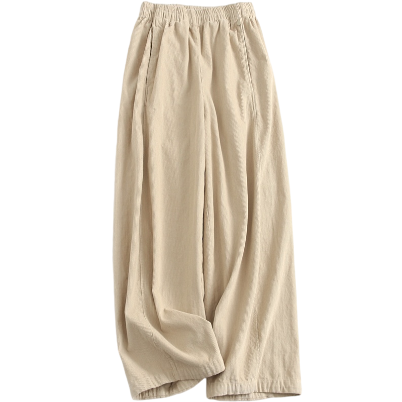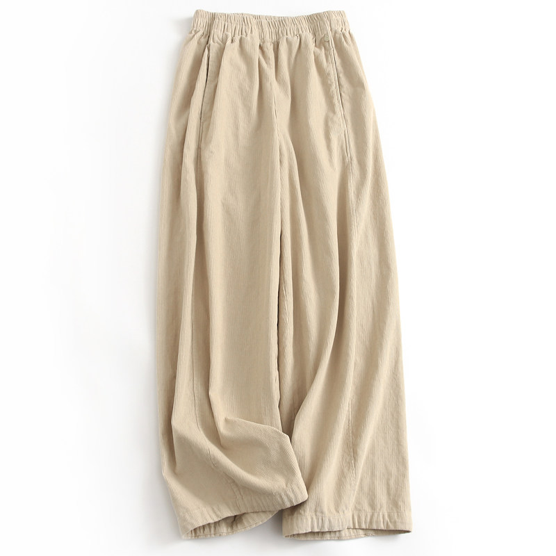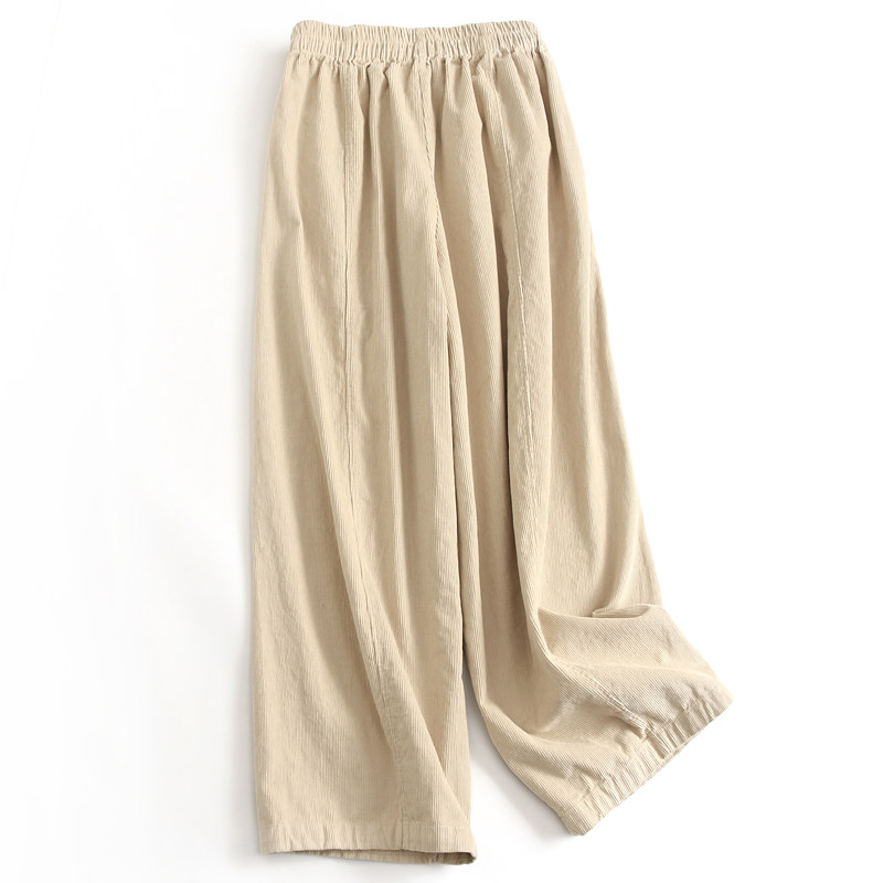 休闲裤 显瘦百搭女裤 J337 阔腿裤 纯色复古灯芯绒松紧腰宽松直筒裤