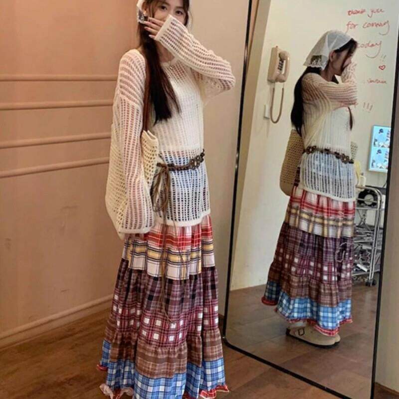 a字长裙子到脚踝 子蛋糕裙半身裙女夏季 2025时尚 波西米亚民族风格