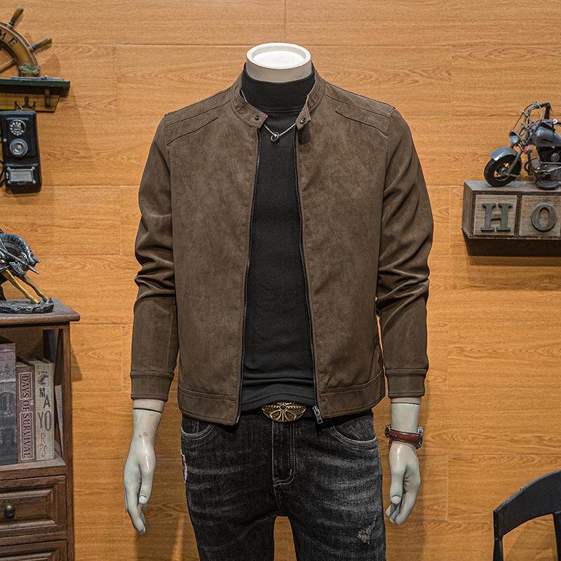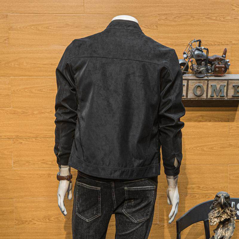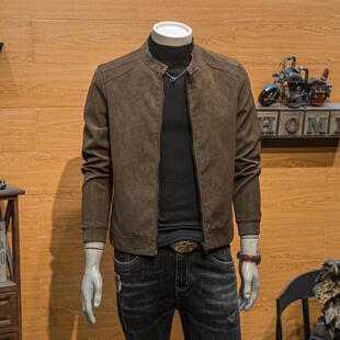 男装 春秋季 青年潮流修身 外套痞帅新款 简约机车皮夹克 立领皮衣男士