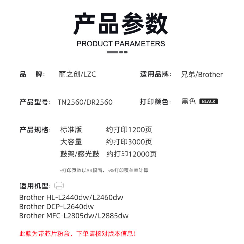 L2440dw 适用兄弟MFC L2885dw打印机HL L2640dw L2460dw墨盒DR2560鼓架TN2560XL L2805dw硒鼓TN2560粉盒DCP