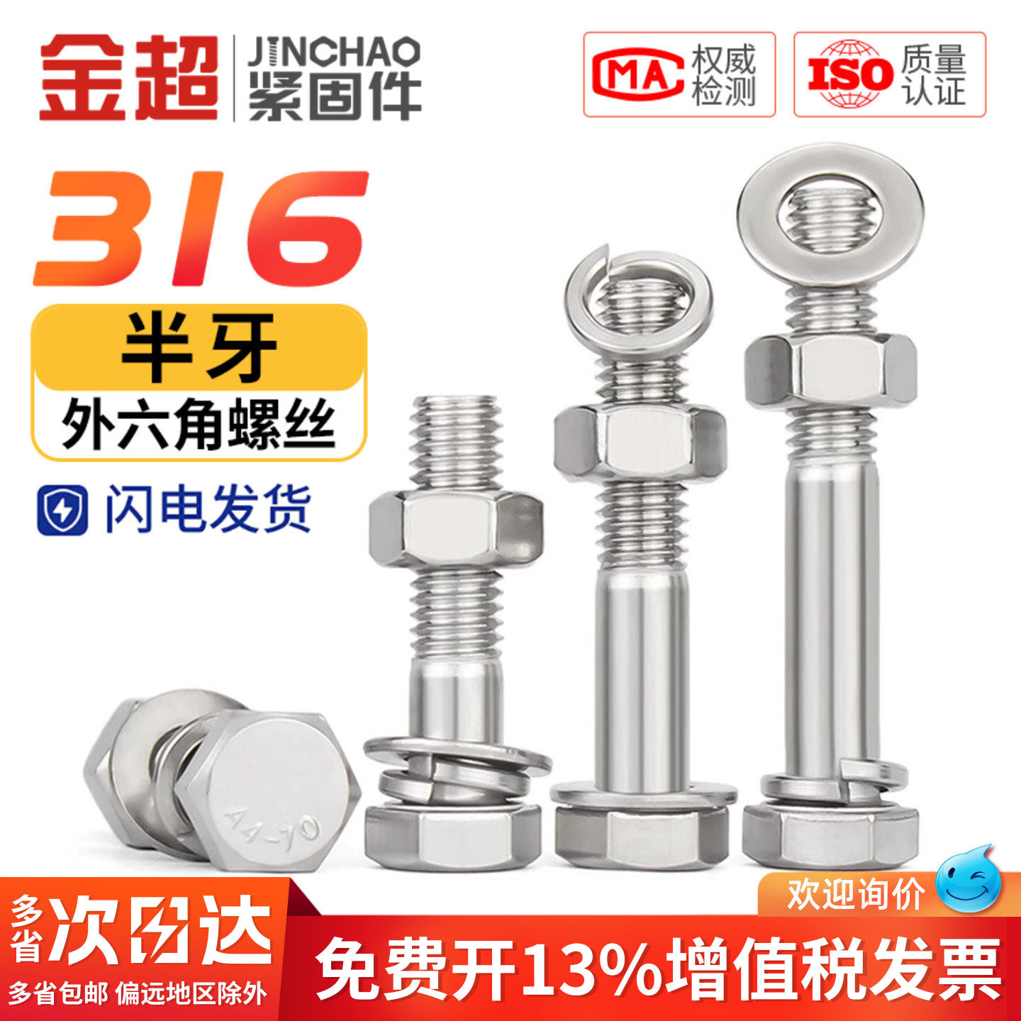 316不锈钢 配件大全螺杆M6M10M12M30 半牙外六角螺栓螺丝螺母套装