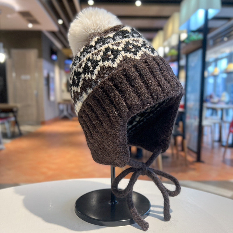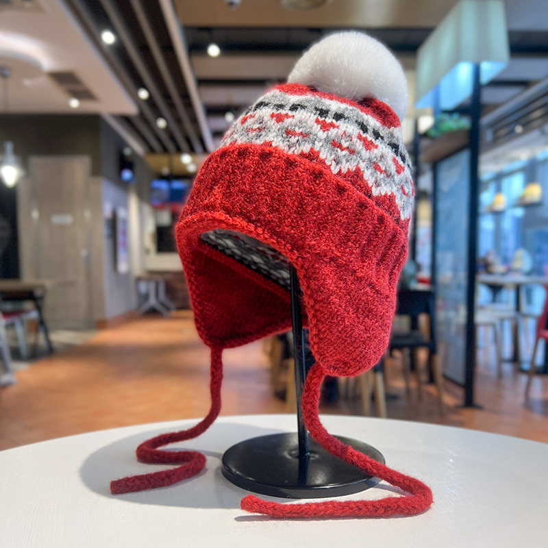氛围感韩系ins粉色针织毛线帽子女秋冬保暖护耳飞行帽可爱雷锋帽