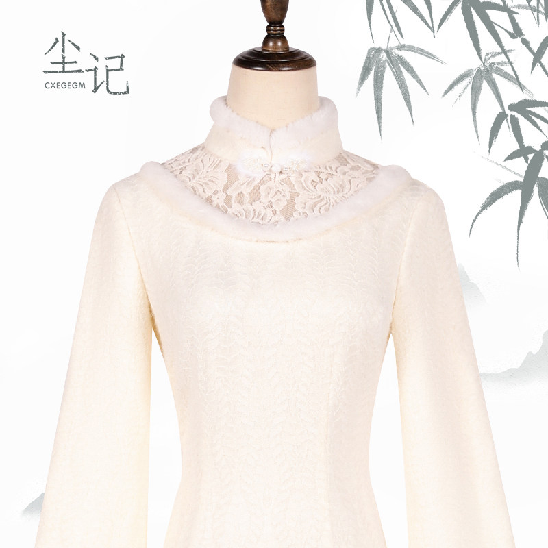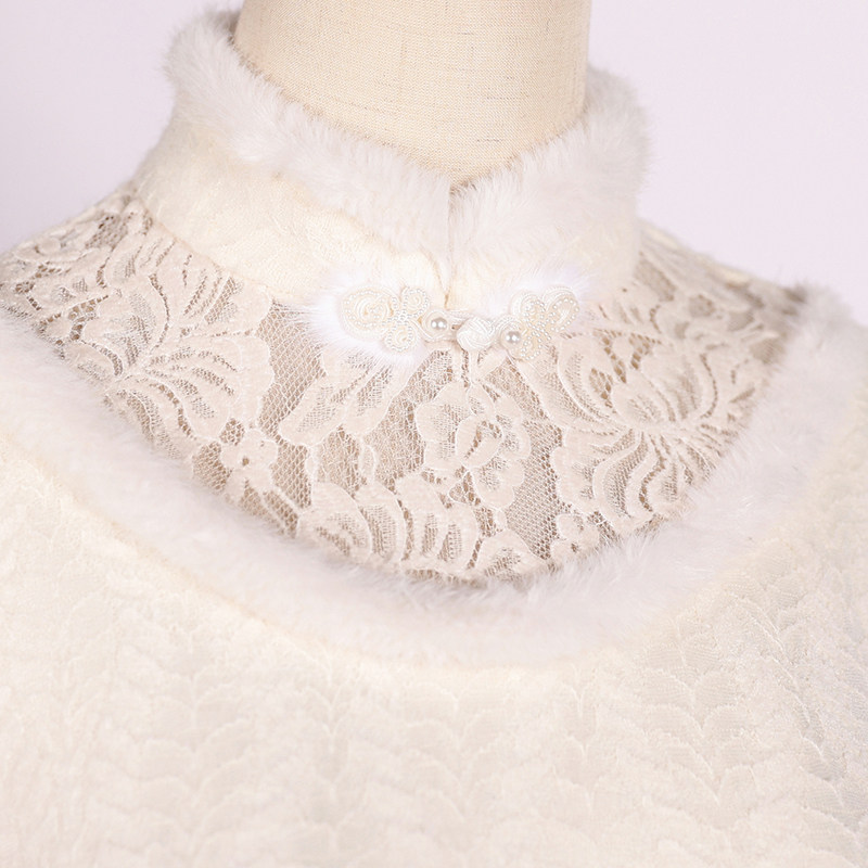 外搭加绒开衫 加绒加厚高贵新中式 2025秋冬季 白色披肩搭配旗袍新款