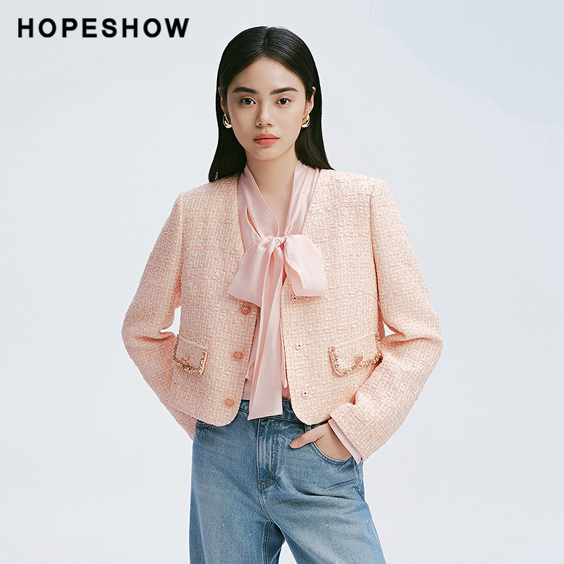 会员专享 女款 红袖 新款 香风正肩单排扣V领短外套 2025春季