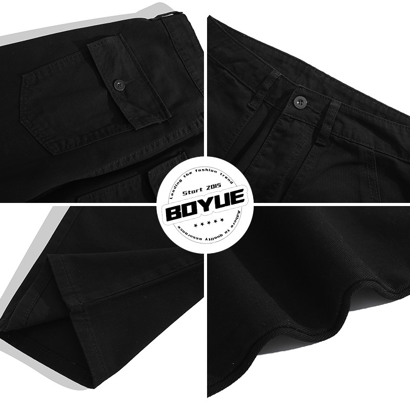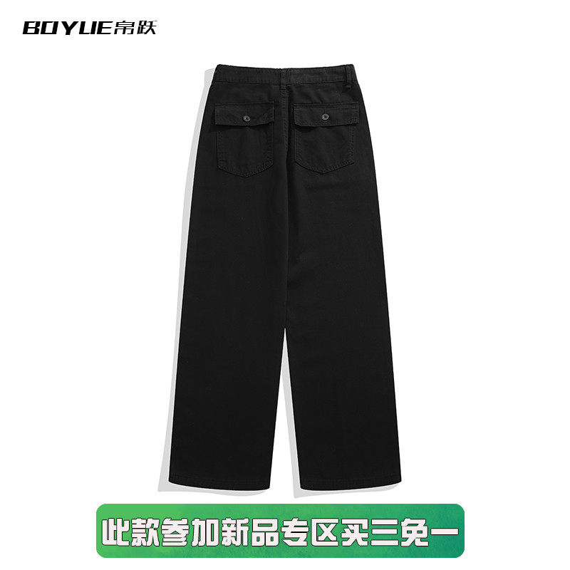 百搭显瘦拖地男潮休闲简约长裤 BOYUE帛跃日系水洗直筒工装 牛仔裤