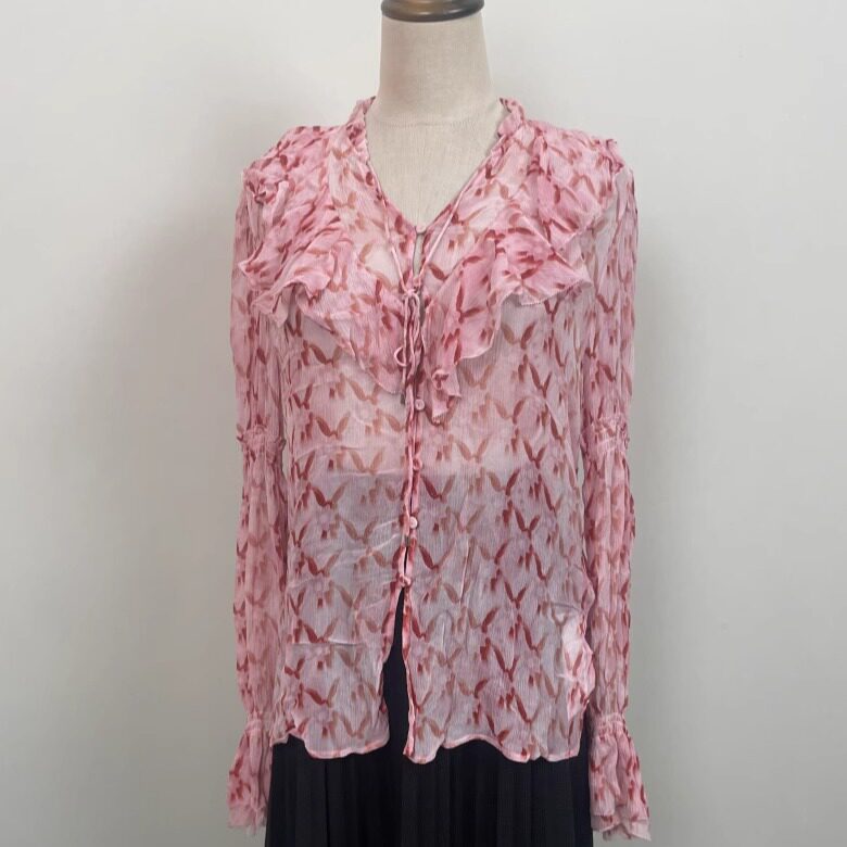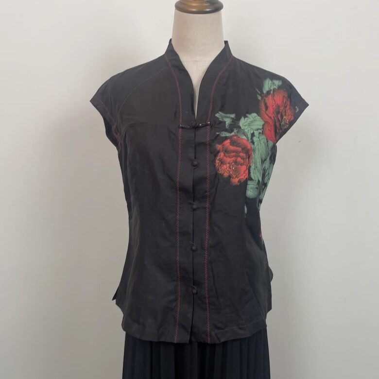 印花衬衫 真丝上装 桑蚕丝上衣柔软舒适大气古风夏季 84古着vintage