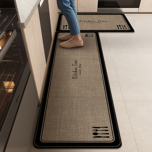 亚麻厨房地垫专用防滑防油吸水垫门口耐脏脚垫家用免洗长条地毯