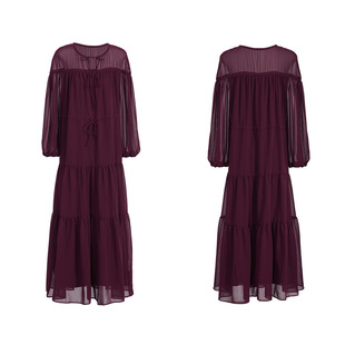 气质长裙夏 慵懒风连衣裙女洋气减龄灯笼袖 朱珠同款 酒红色宽松时尚