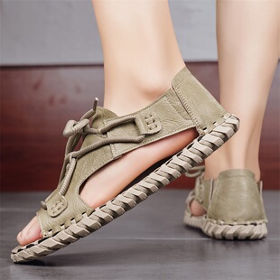 镂空洞洞凉拖罗马编织外穿防滑防臭爸爸开车沙滩鞋 夏季 男士 皮凉鞋
