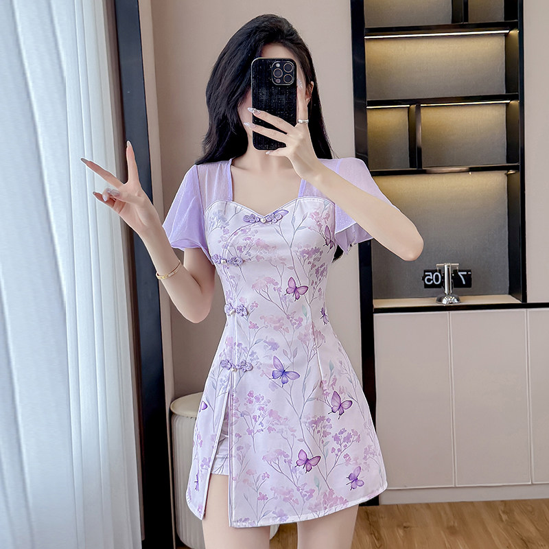 设计感小众碎花连衣裙短裤 2025新中式 两件套女 改良旗袍套装 喇叭袖