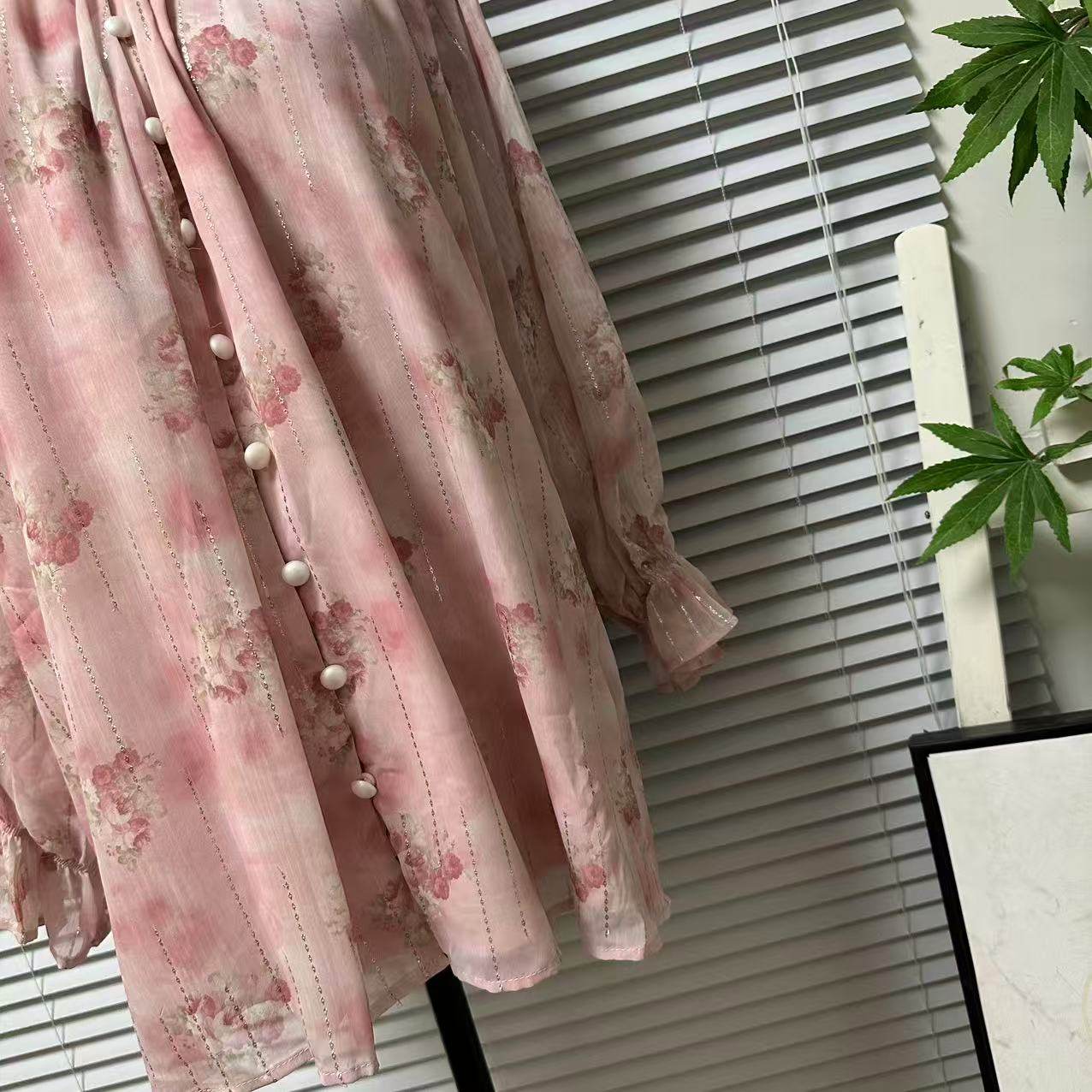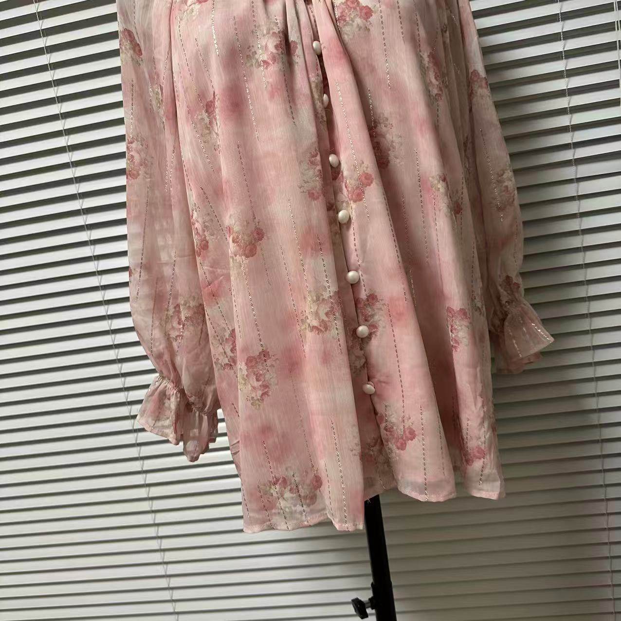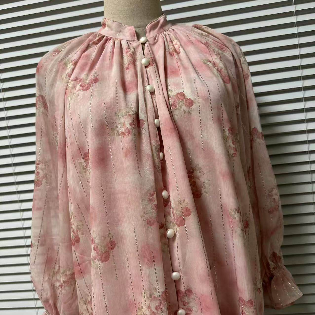 上衣休闲肌理感外套 衬衫 0611 53法系品牌单样衣亮丝雪纺碎花长袖