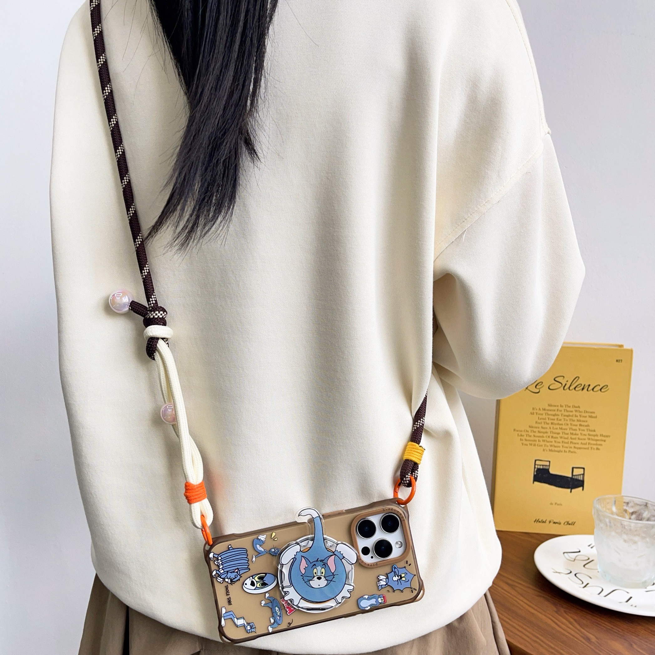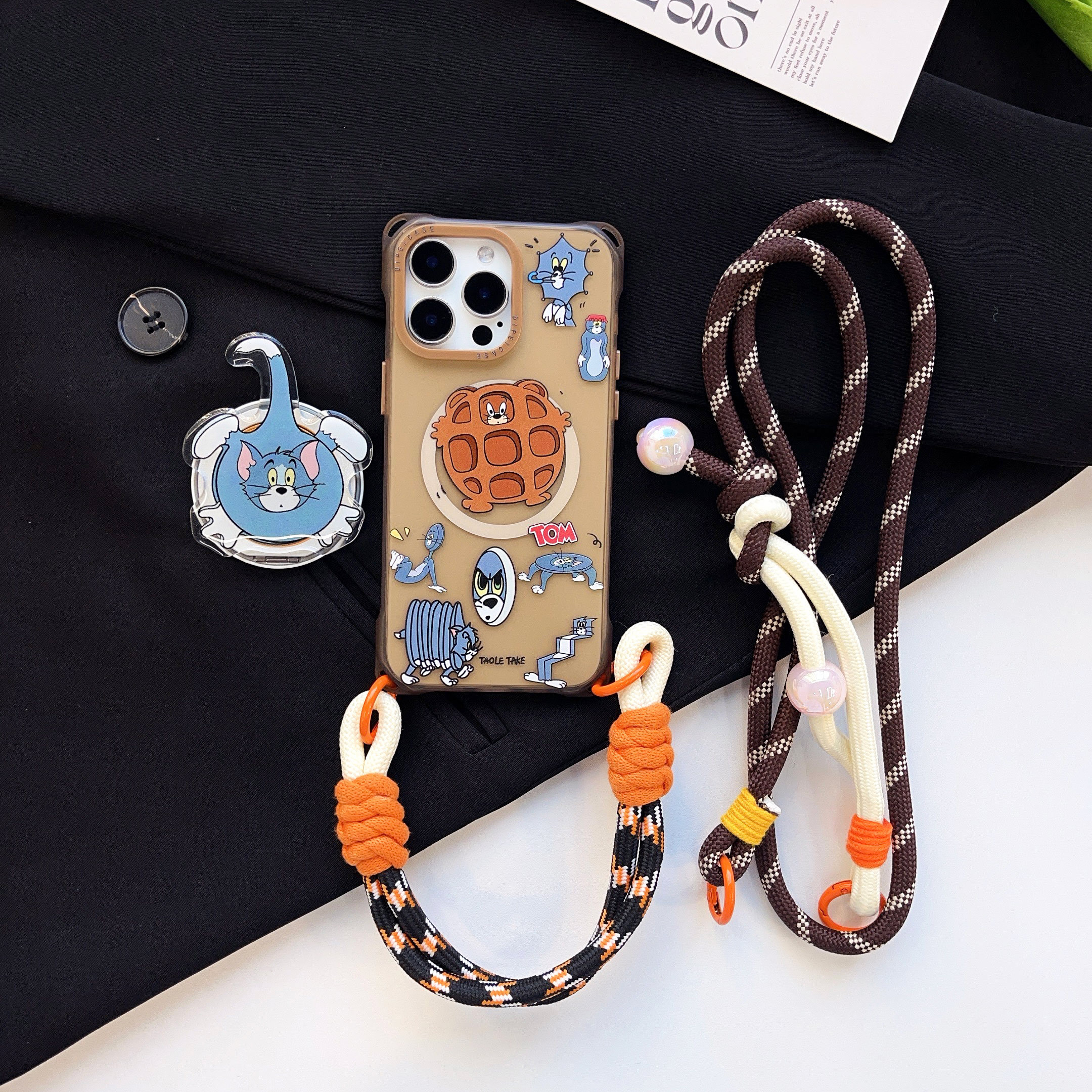 汤姆猫杰利鼠经典 画面创意壳支持苹果华为mate70pro挂绳iPhone16promax斜挎360°旋转支点壳磁吸防摔手机壳