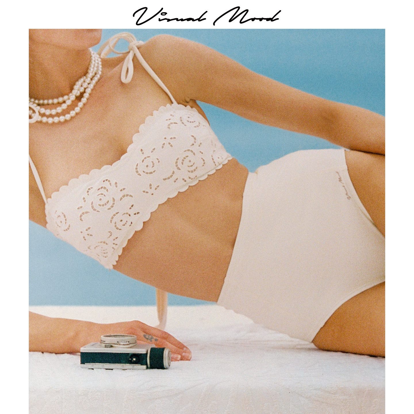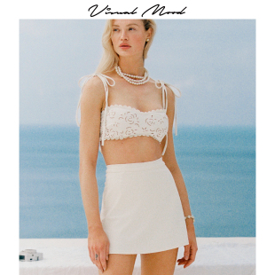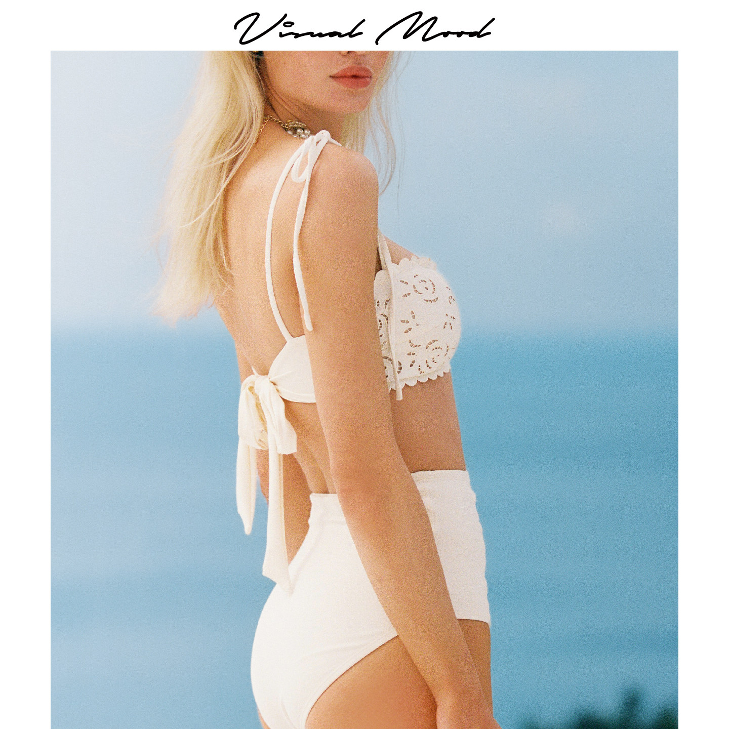 visual mood复古白镂空刺绣分体泳衣女夏显瘦海边度假比基尼套装