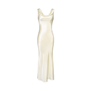 House CB精致优雅奶油白缎面垂领露背超长连衣裙Safaira