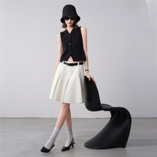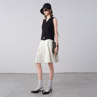 纯棉配腰带压褶半身裙18465920 新款 设计师款 佐丹奴A字短裙女夏季