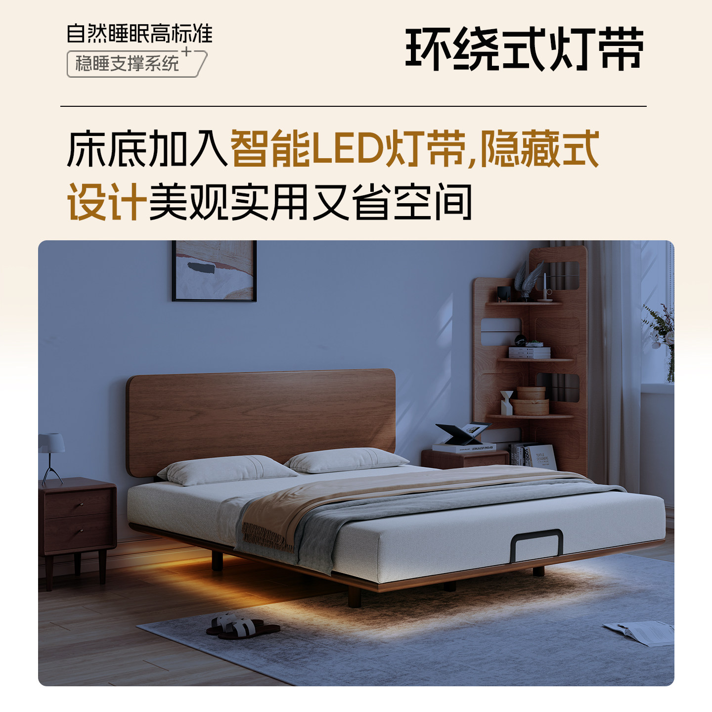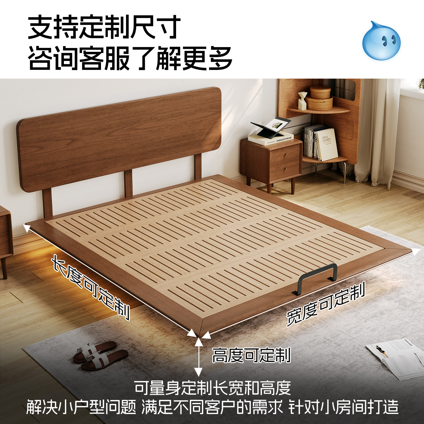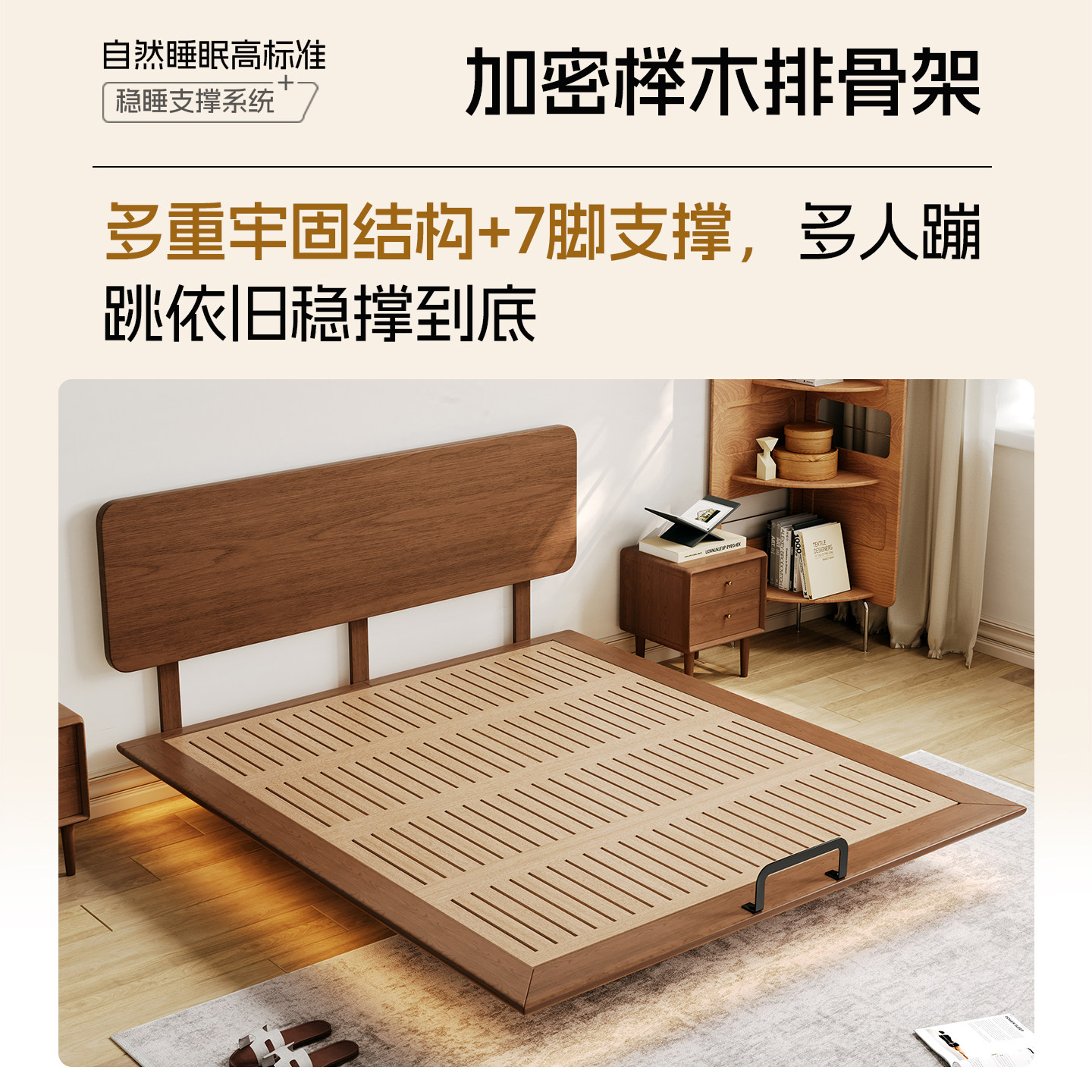 全实木无床头床架榫卯静音悬浮床小户型齐边排骨架床架可定制尺寸