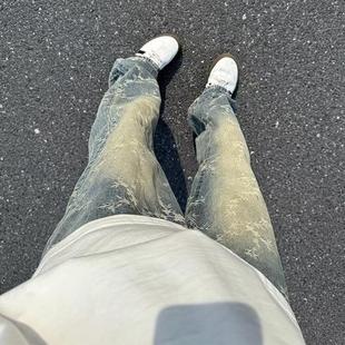 宽松独特设计感长裤 胖胖哥腊肠狗刺绣牛仔裤 直筒大码 秋季 子潮 男款