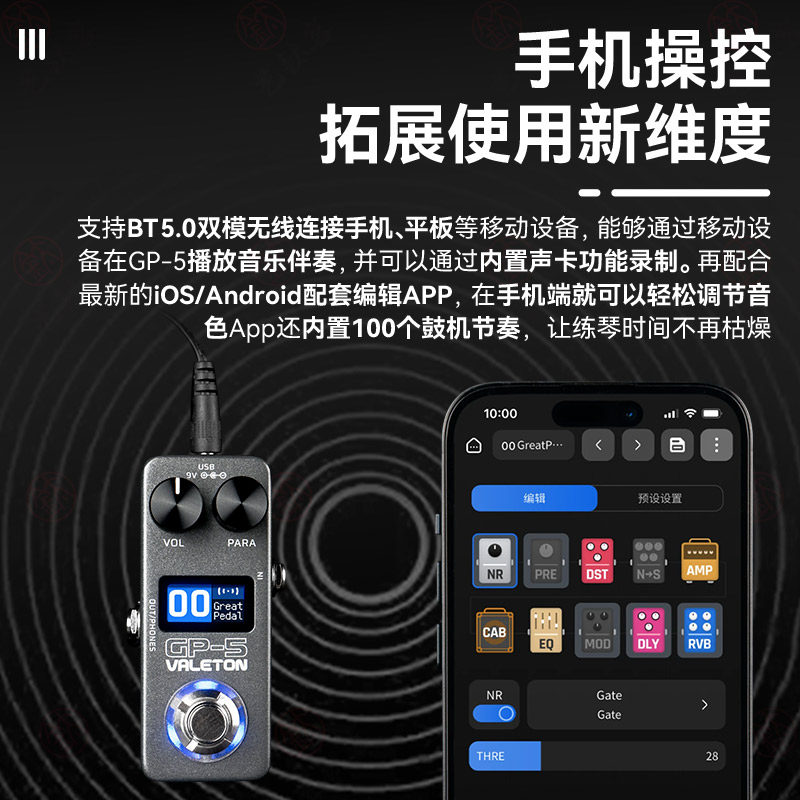 Valeton顽声GP 5电吉他综合效果器贝斯单块箱体模拟鼓机声卡内录