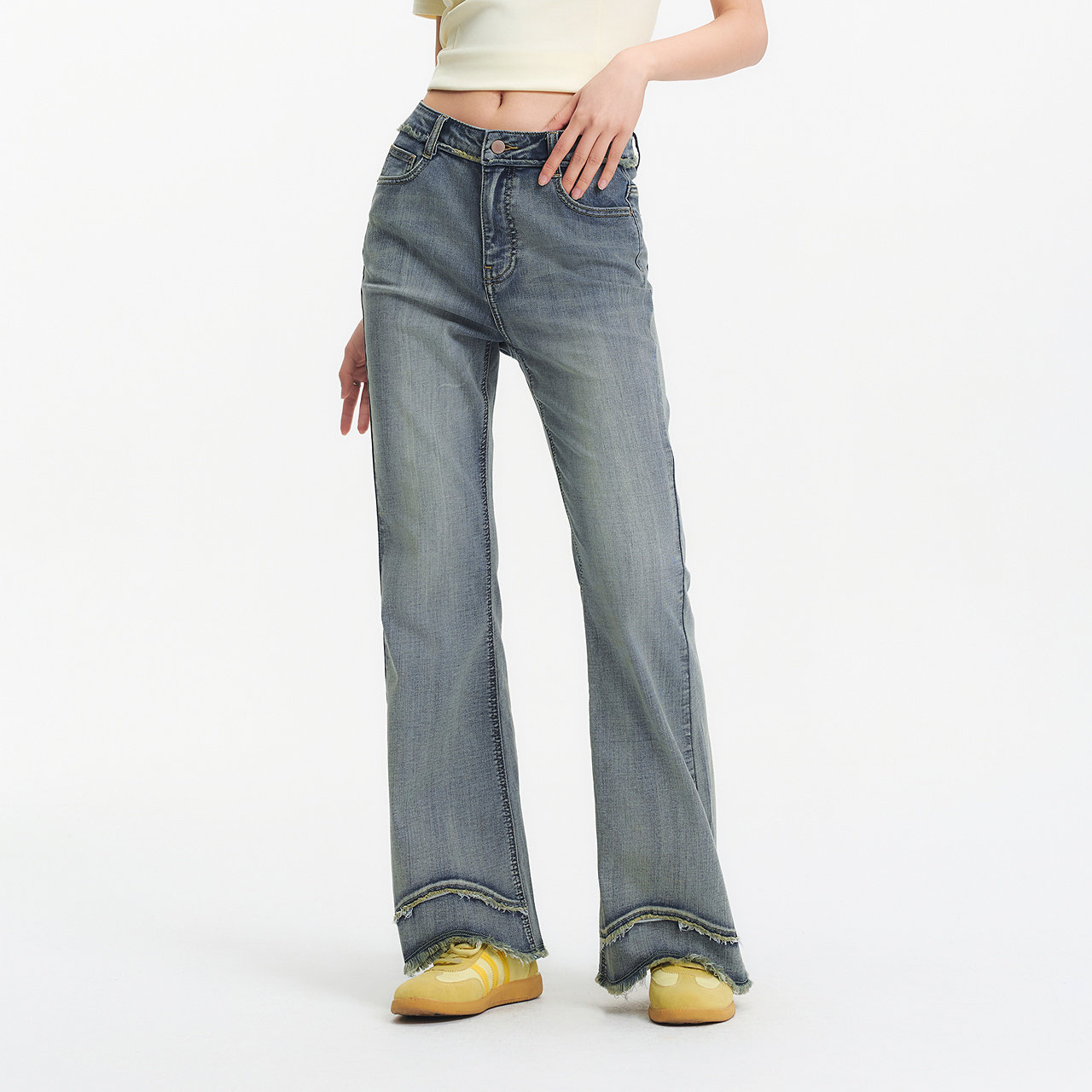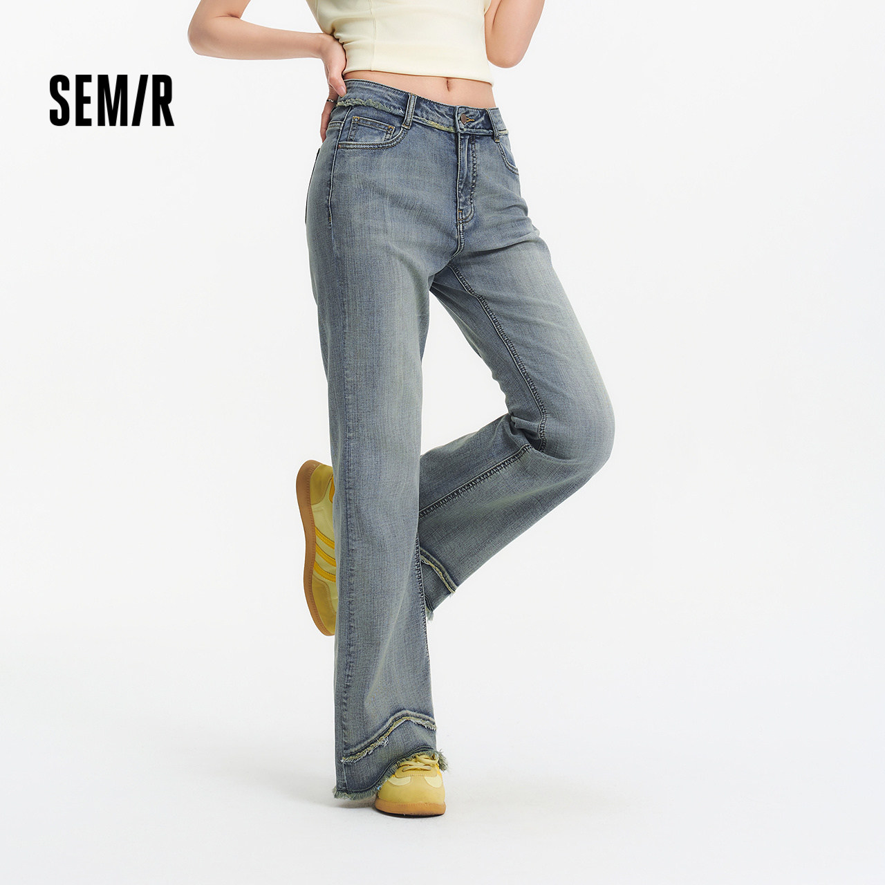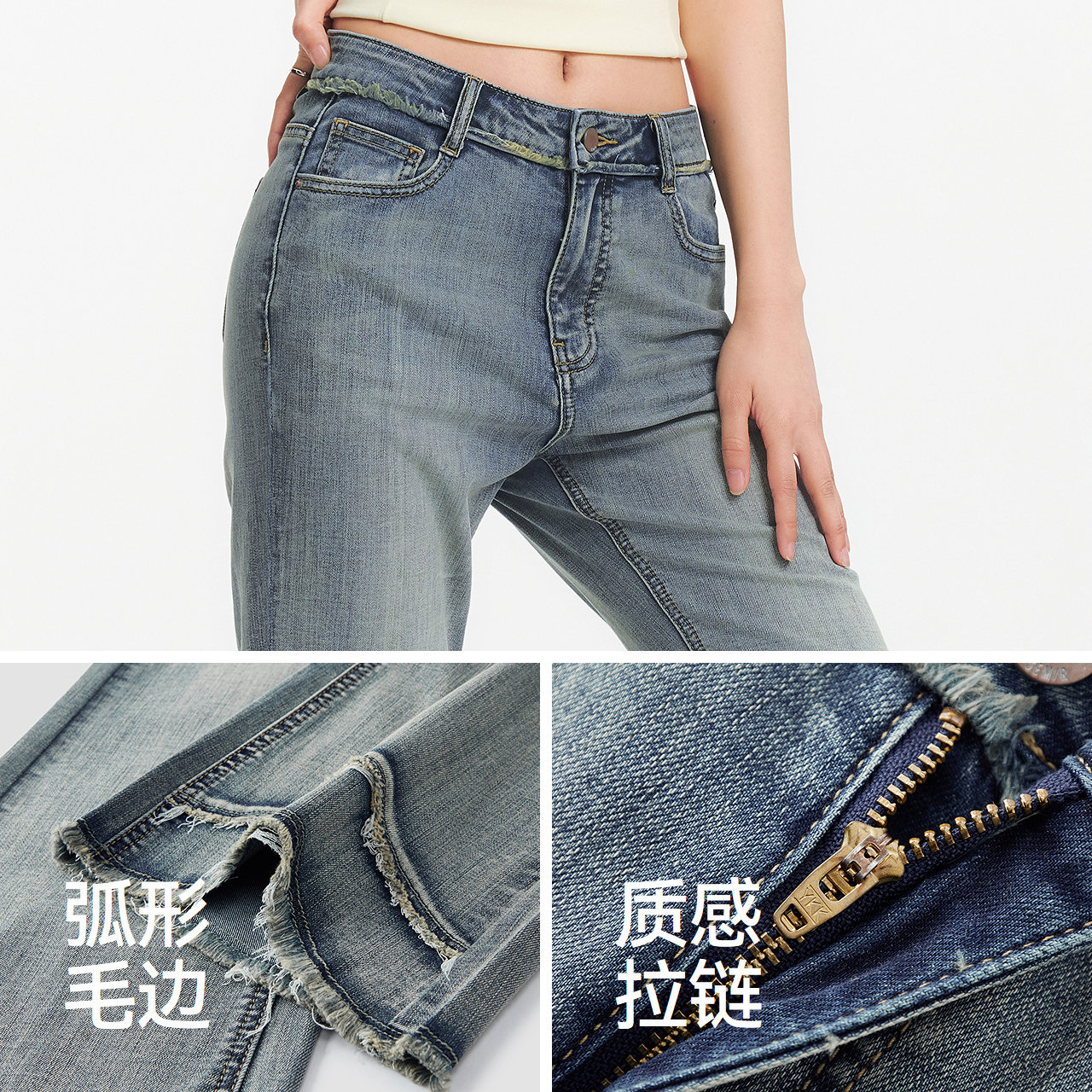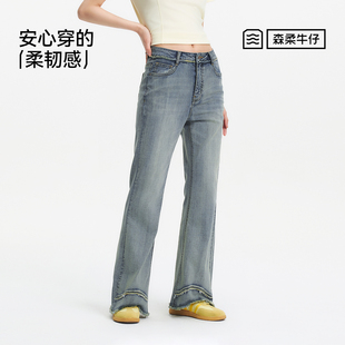 女毛边长裤 森马牛仔裤 街头2025新款 夏季 森柔牛仔 喇叭裤 商场同款