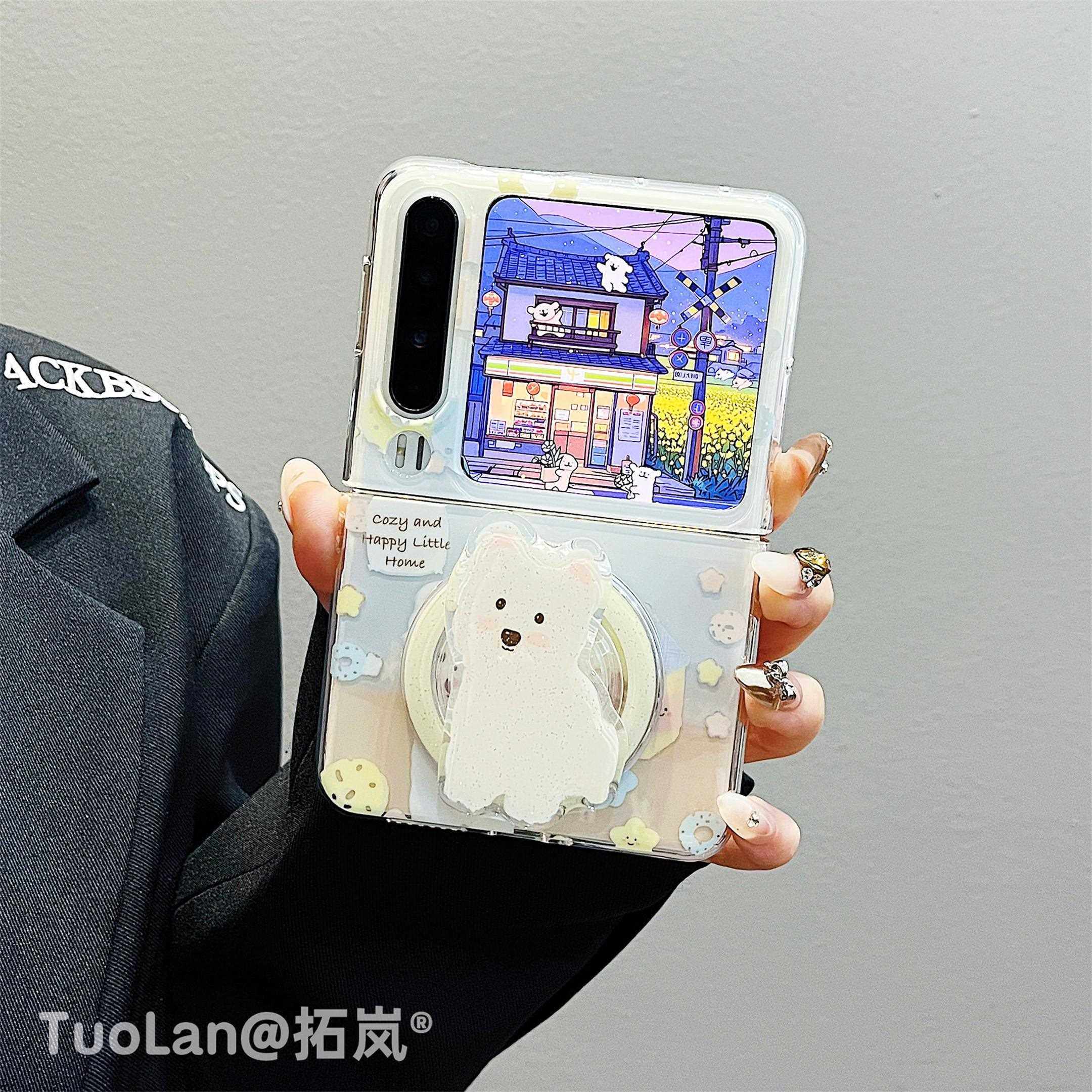 s防摔女款 挂绳p50pocket2 适用华为purax折叠屏手机壳韩风ins趣味卡通可爱房子狗狗磁吸支架PuraX典藏版 拓岚
