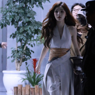 裤 马甲上衣女高腰显瘦设计感西装 两件套 米白色挂脖无袖 张予曦同款