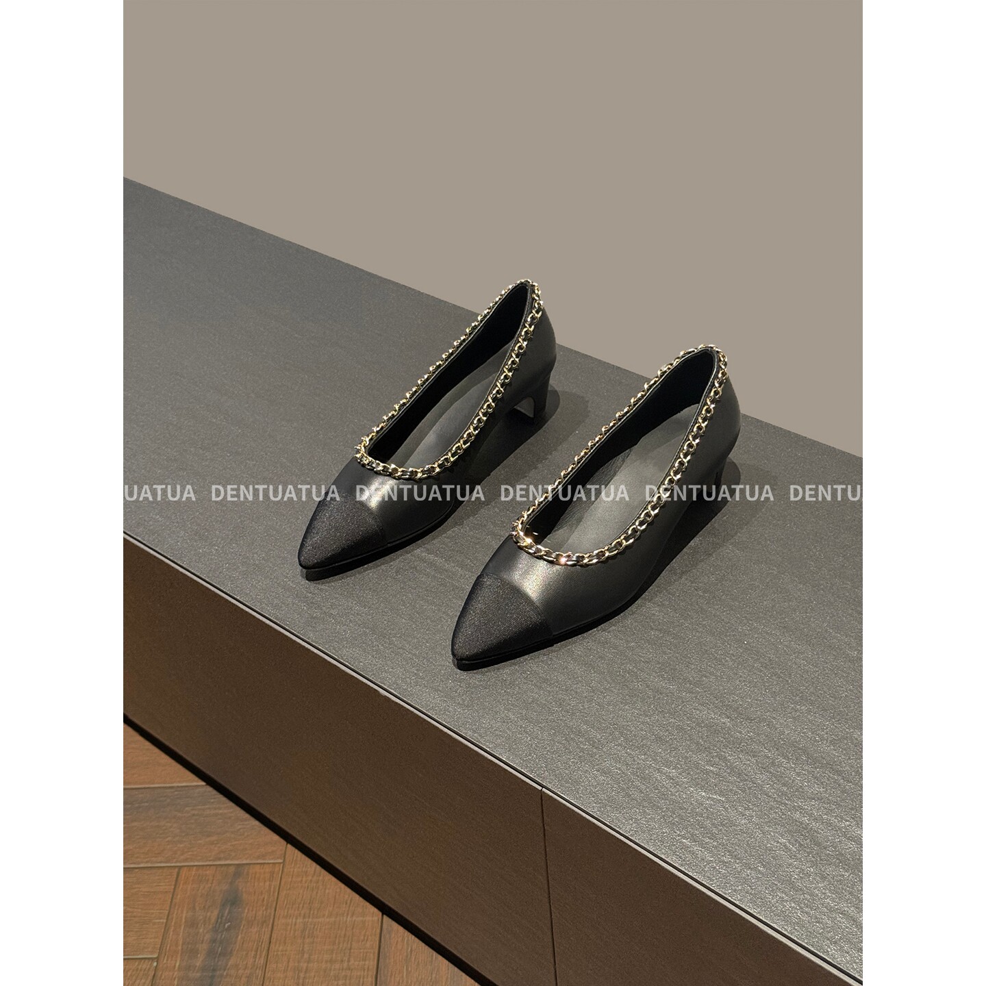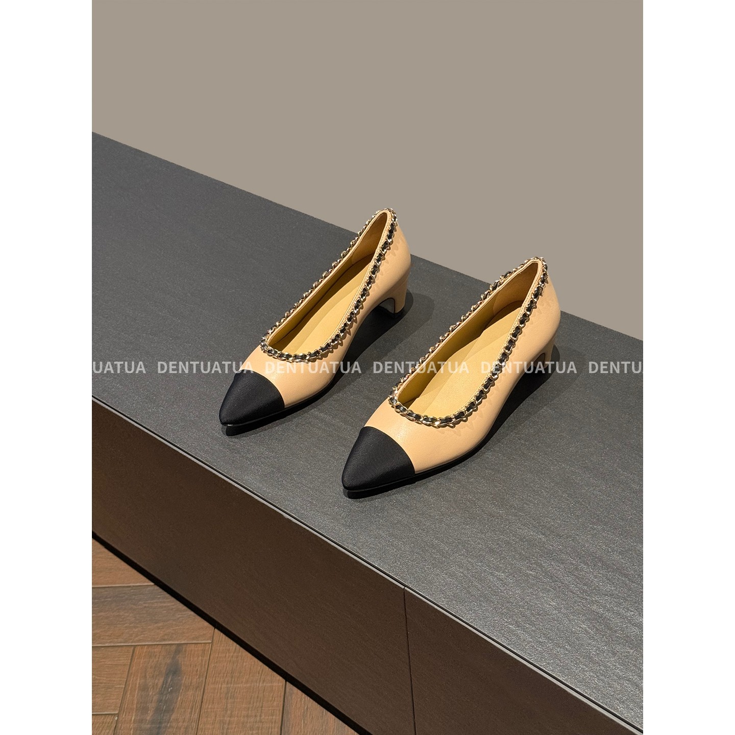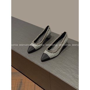 鞋 尖头链条平底粗跟浅口单鞋 柜里 25ss 女 显眼包 DENTUATUA