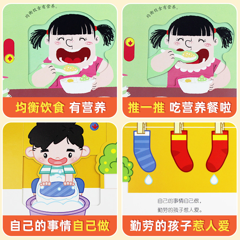 好玩 3岁宝宝好习惯认知推拉书一岁半婴儿撕不烂益智玩具看儿童书籍情景立体 洞洞拉拉书幼儿启蒙早教书翻翻机关书绘本0一1到2