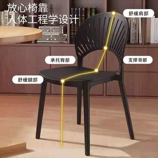 家用加厚塑料餐椅商用餐厅休闲靠背椅现代简约网红镂空贝壳椅凳子