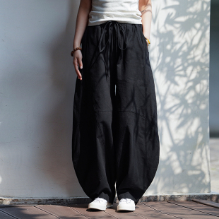 直筒斜切镰刀长裤 黑武士山本风棉麻弯刀裤 阔腿灯笼裤 薄款 子男夏季