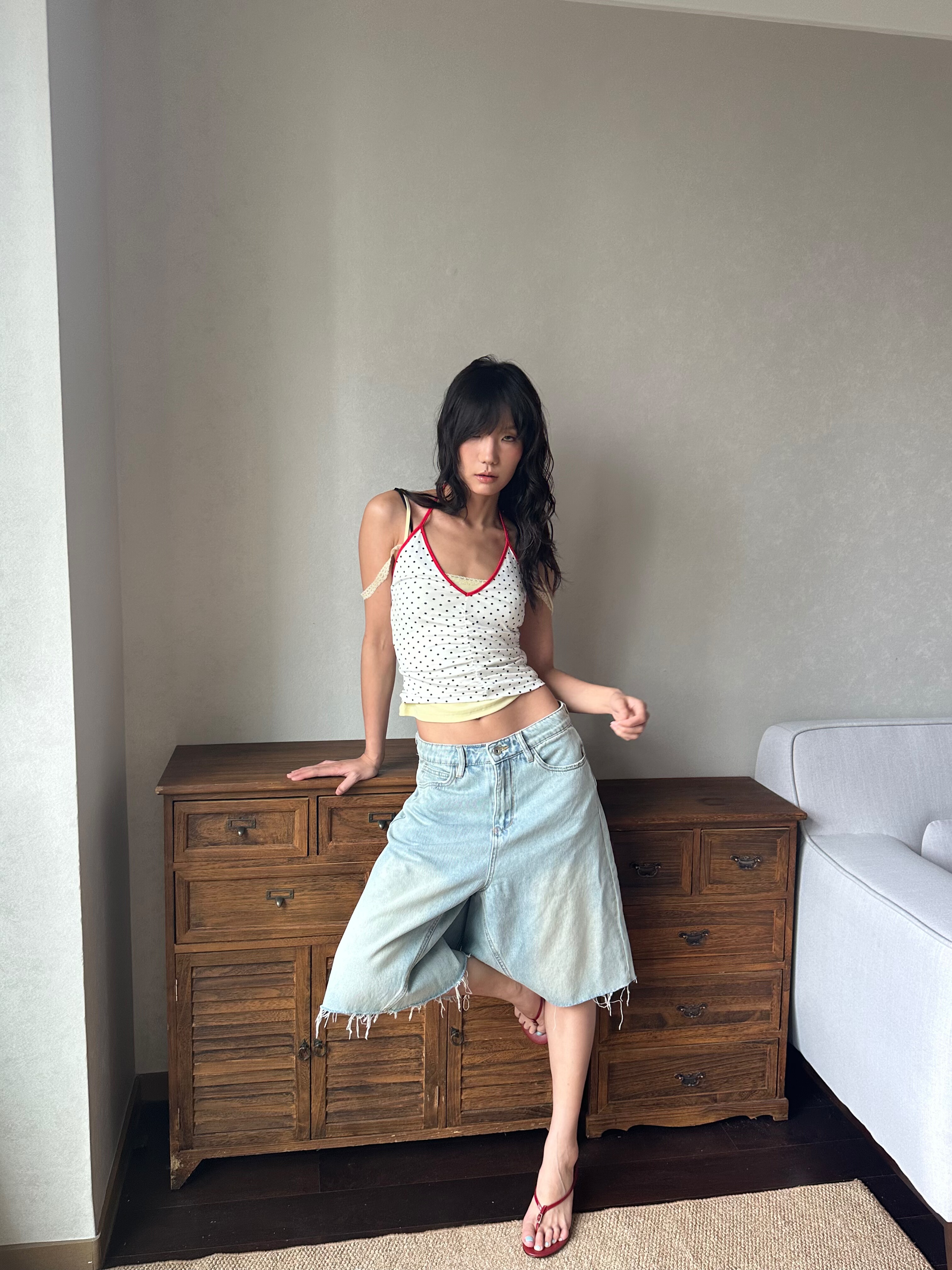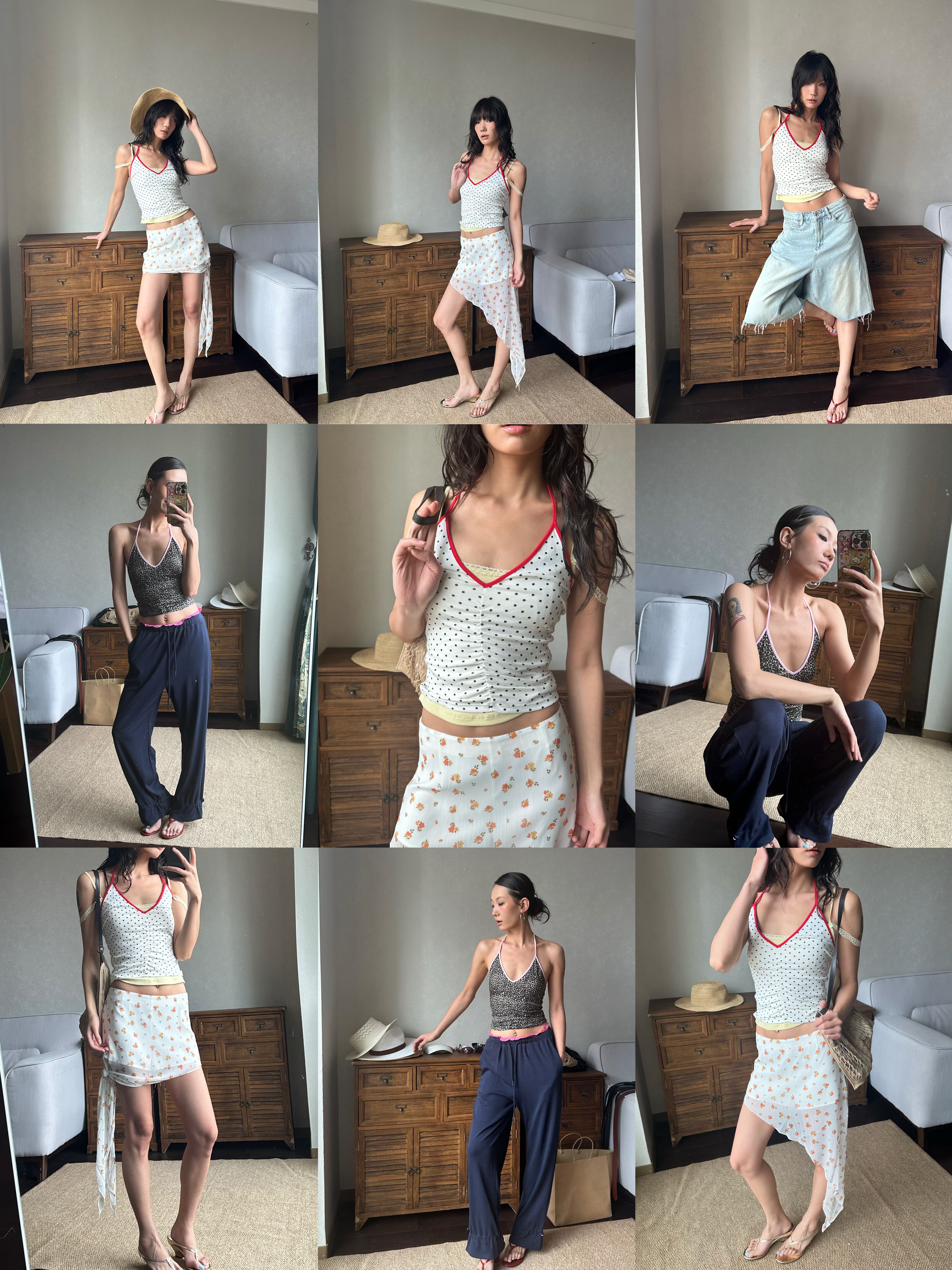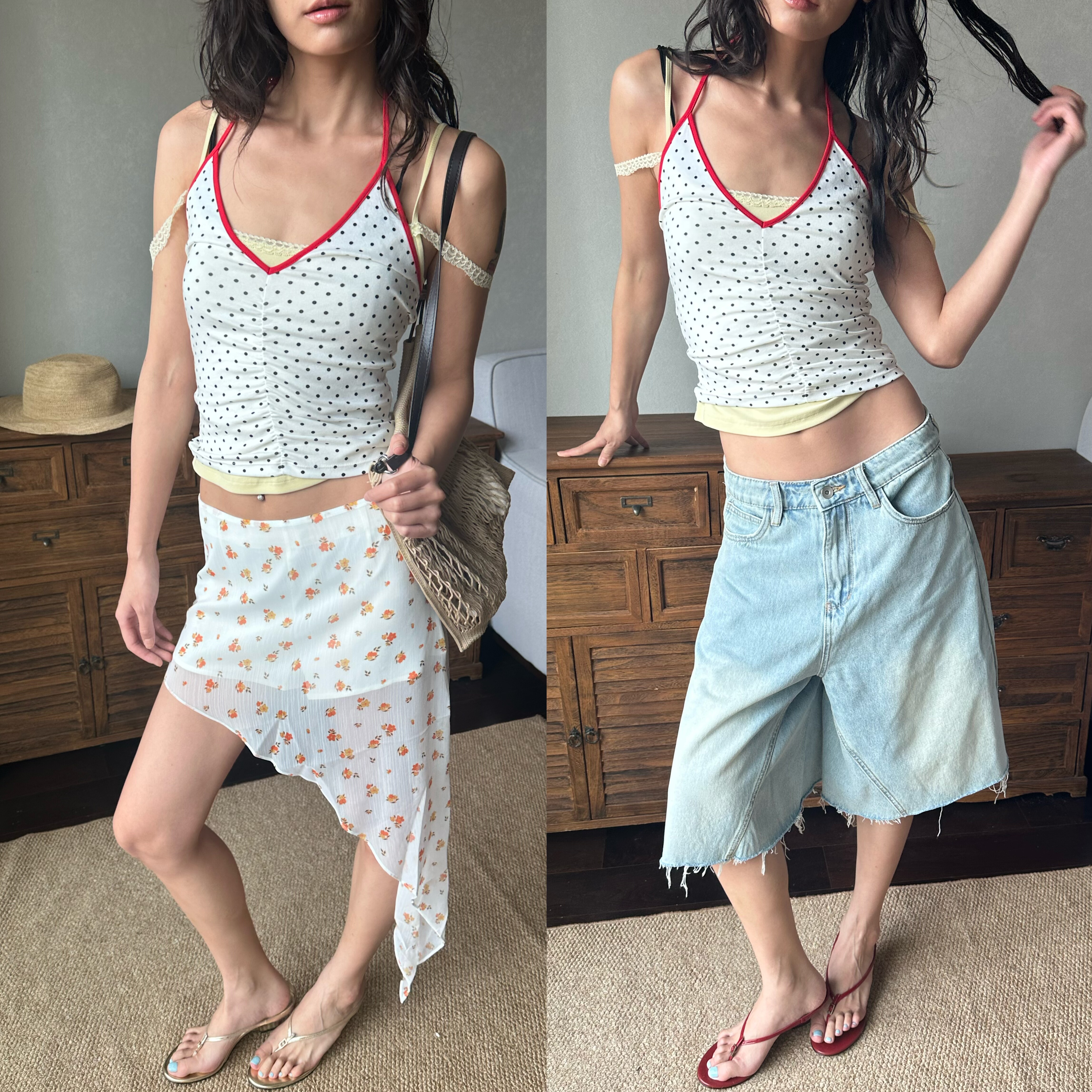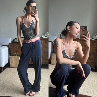 豹纹 波点 WEEEECHAN次日早晨 V领抽褶印花挂脖背心
