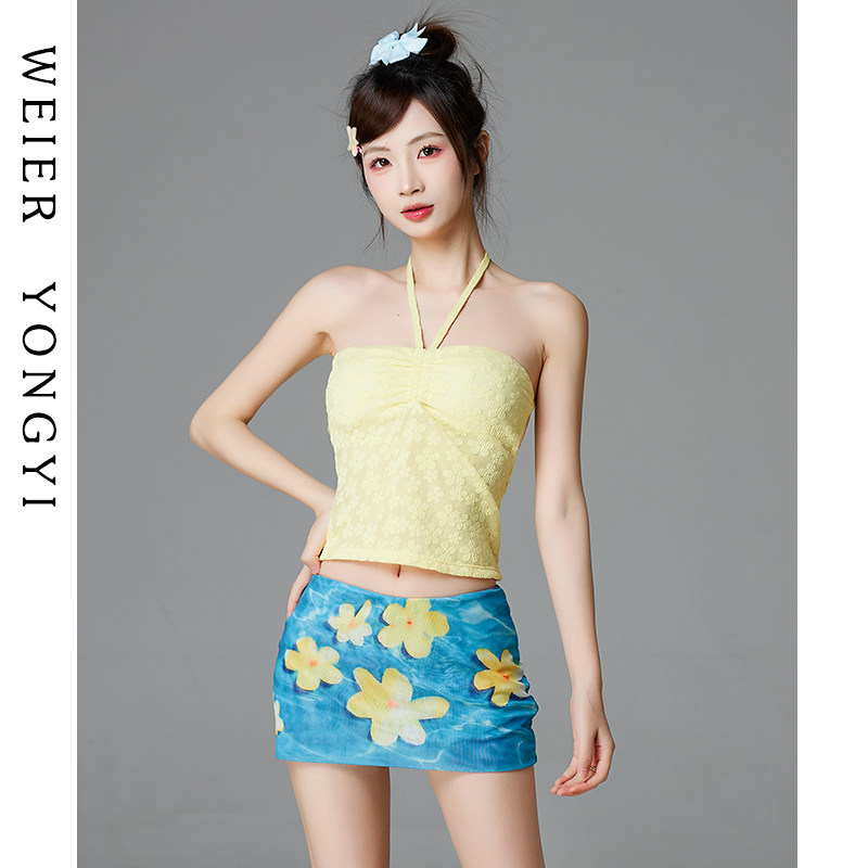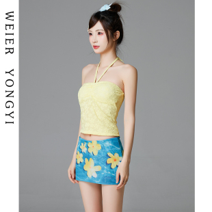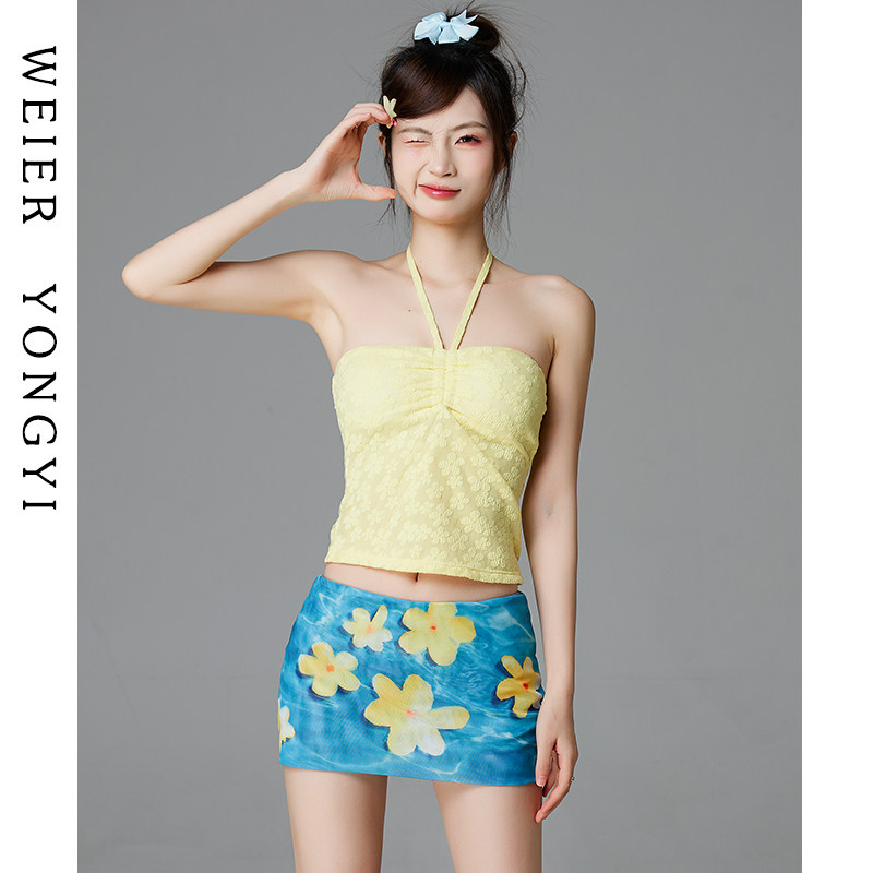 多巴胺性感辣妹纯欲风抹胸挂脖分体温泉海边度假泳装 泳衣女款 法式