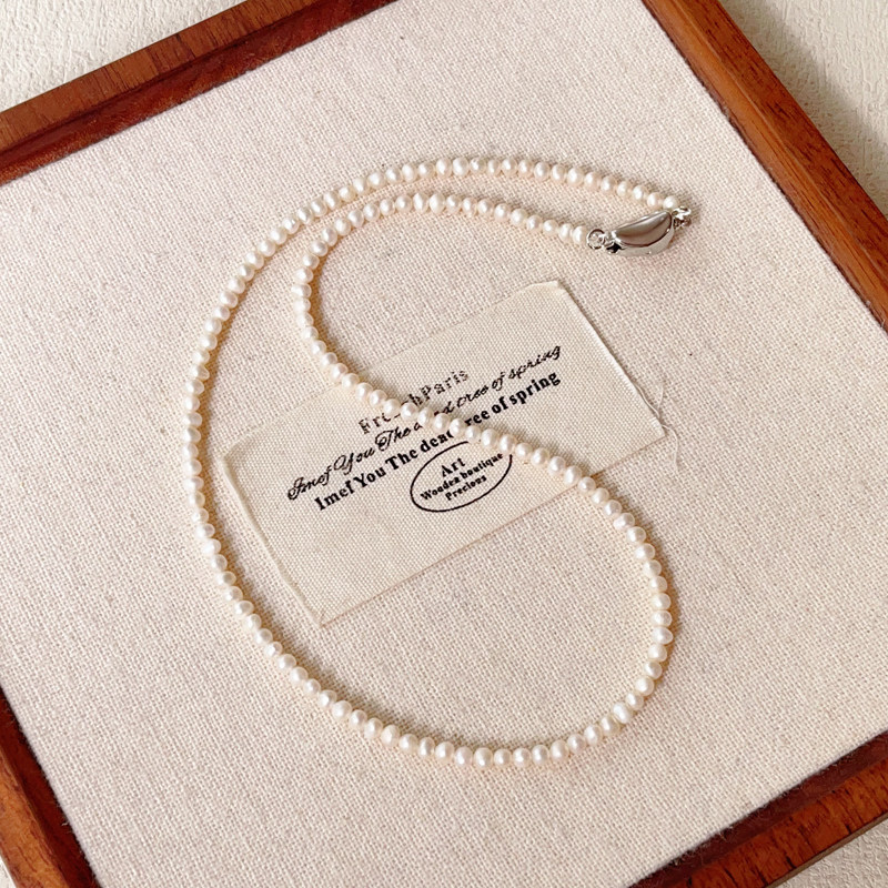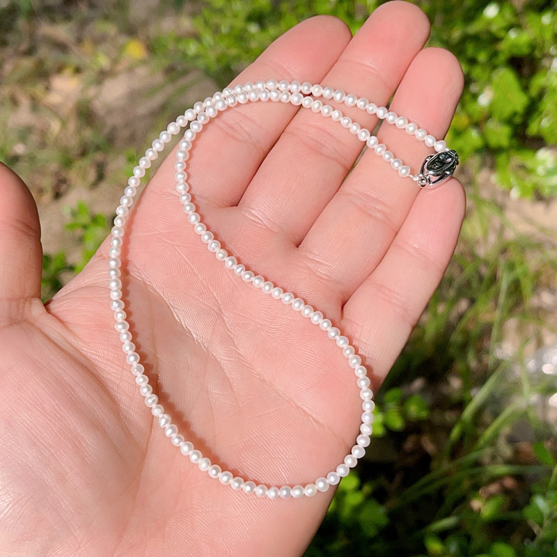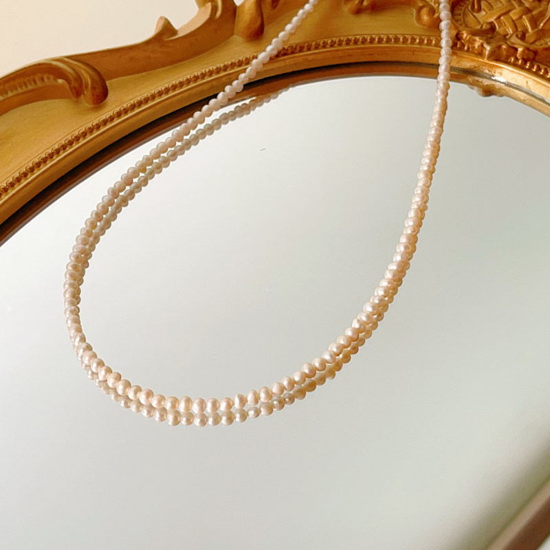 天然淡水珍珠小米珠3mm元 宝扣40cm项链高颜值简约柔美气质项链