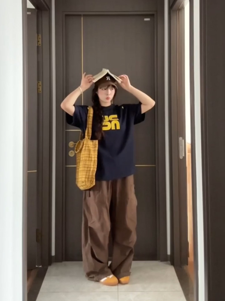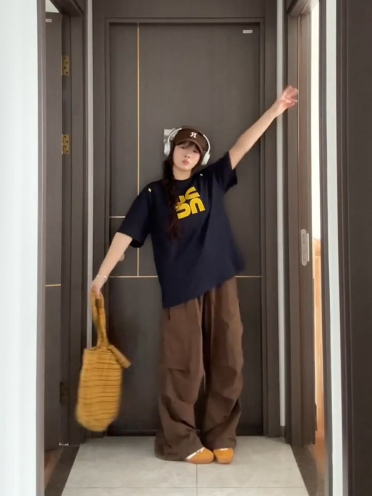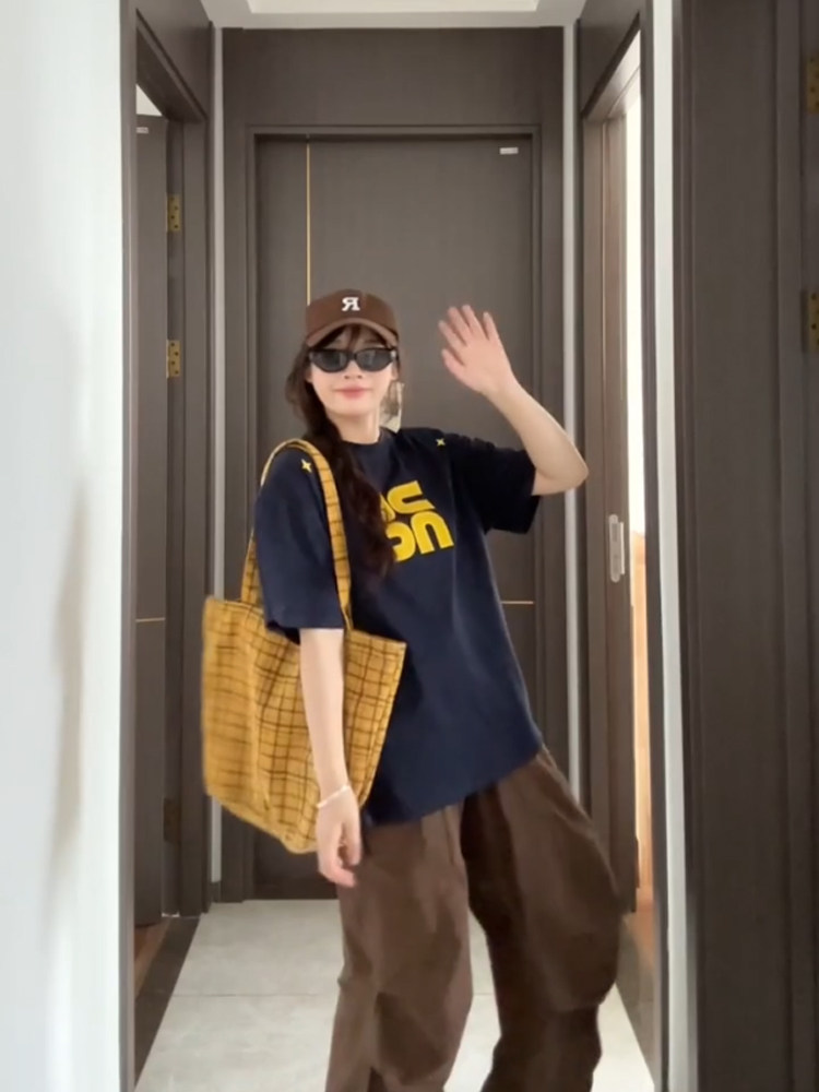 宽松oversize半袖 国潮牌美式 夏季 T恤女2024新款 情侣体恤 高街短袖