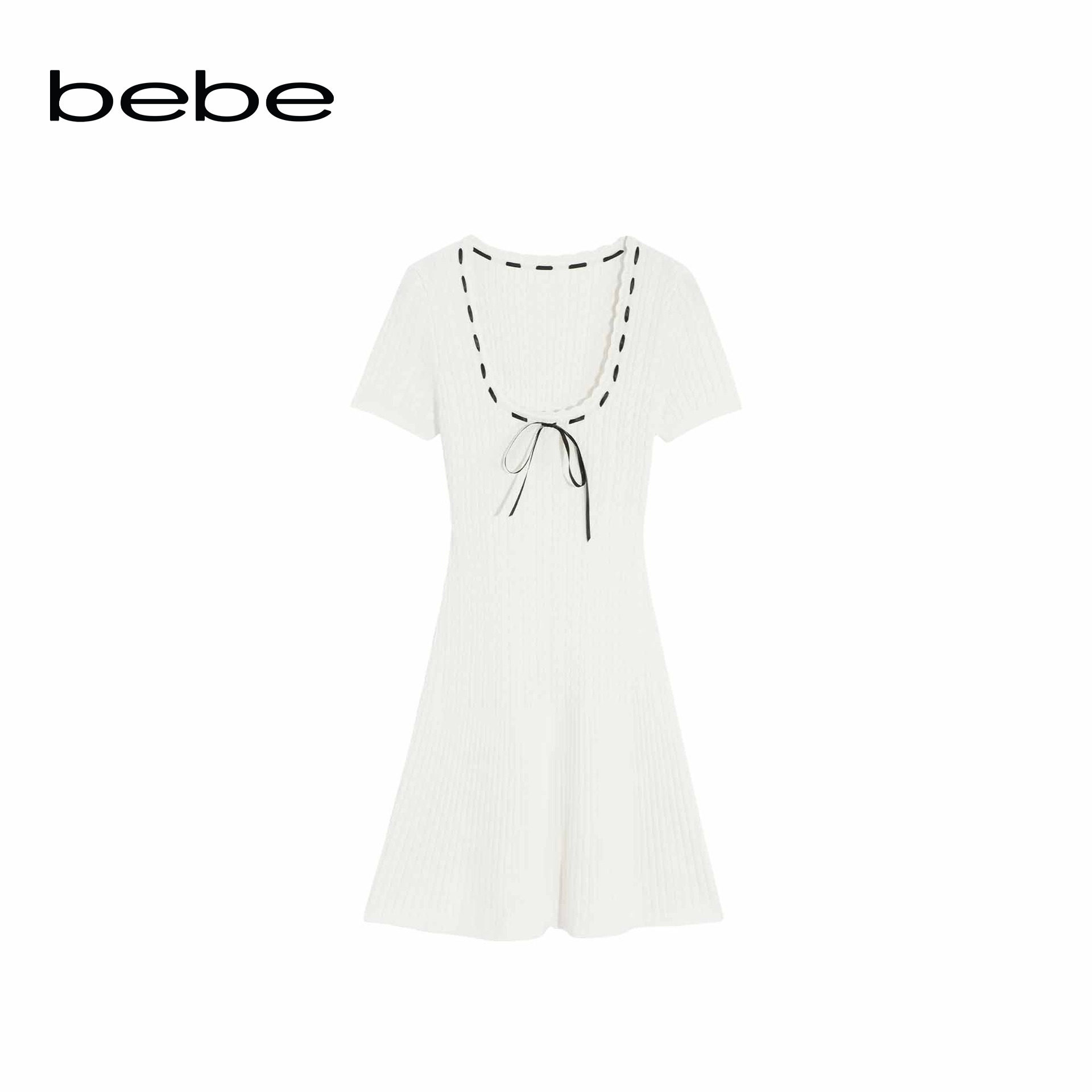 bebe夏季 补单 系列女士甜美小香风蝴蝶结系带针织裙230905 爆款