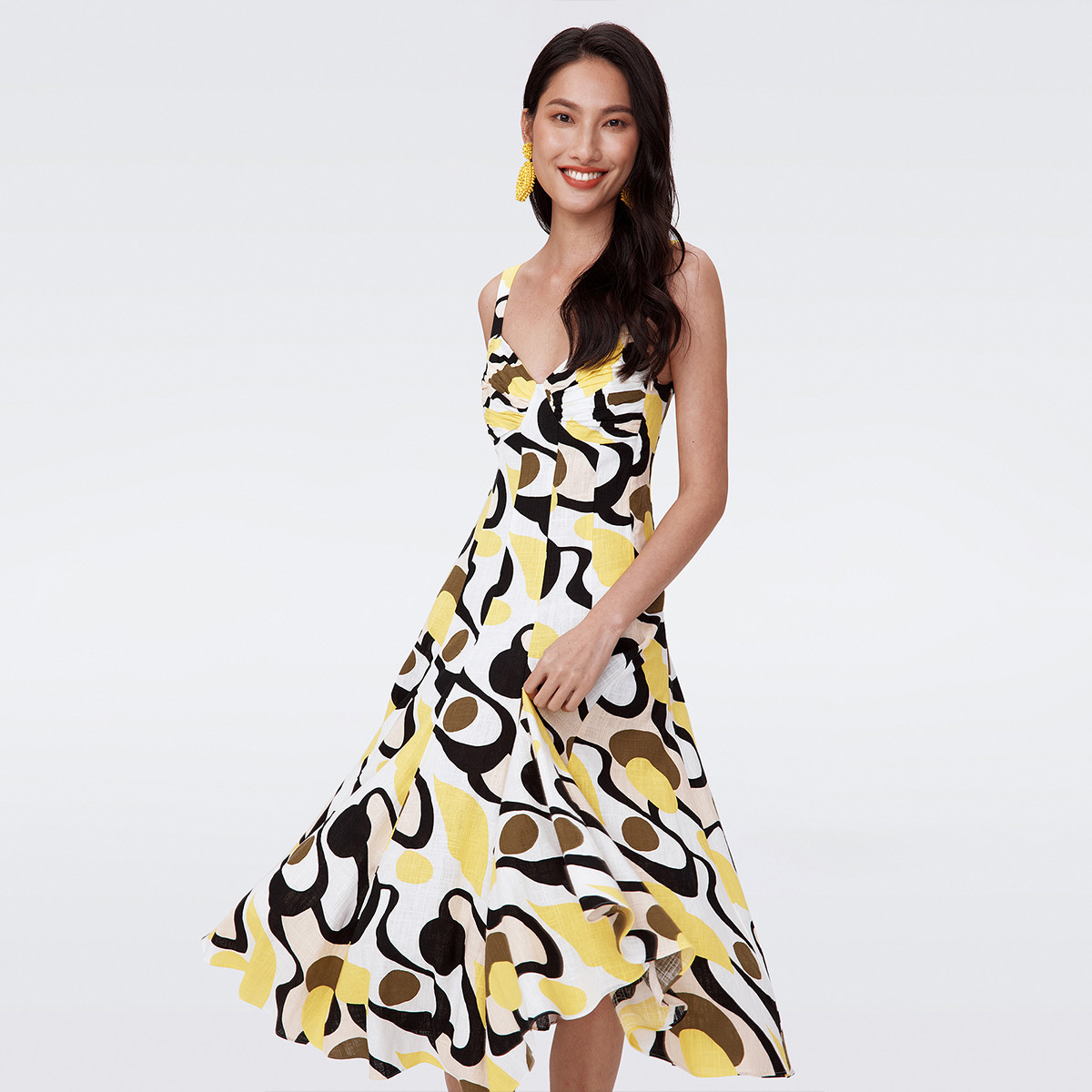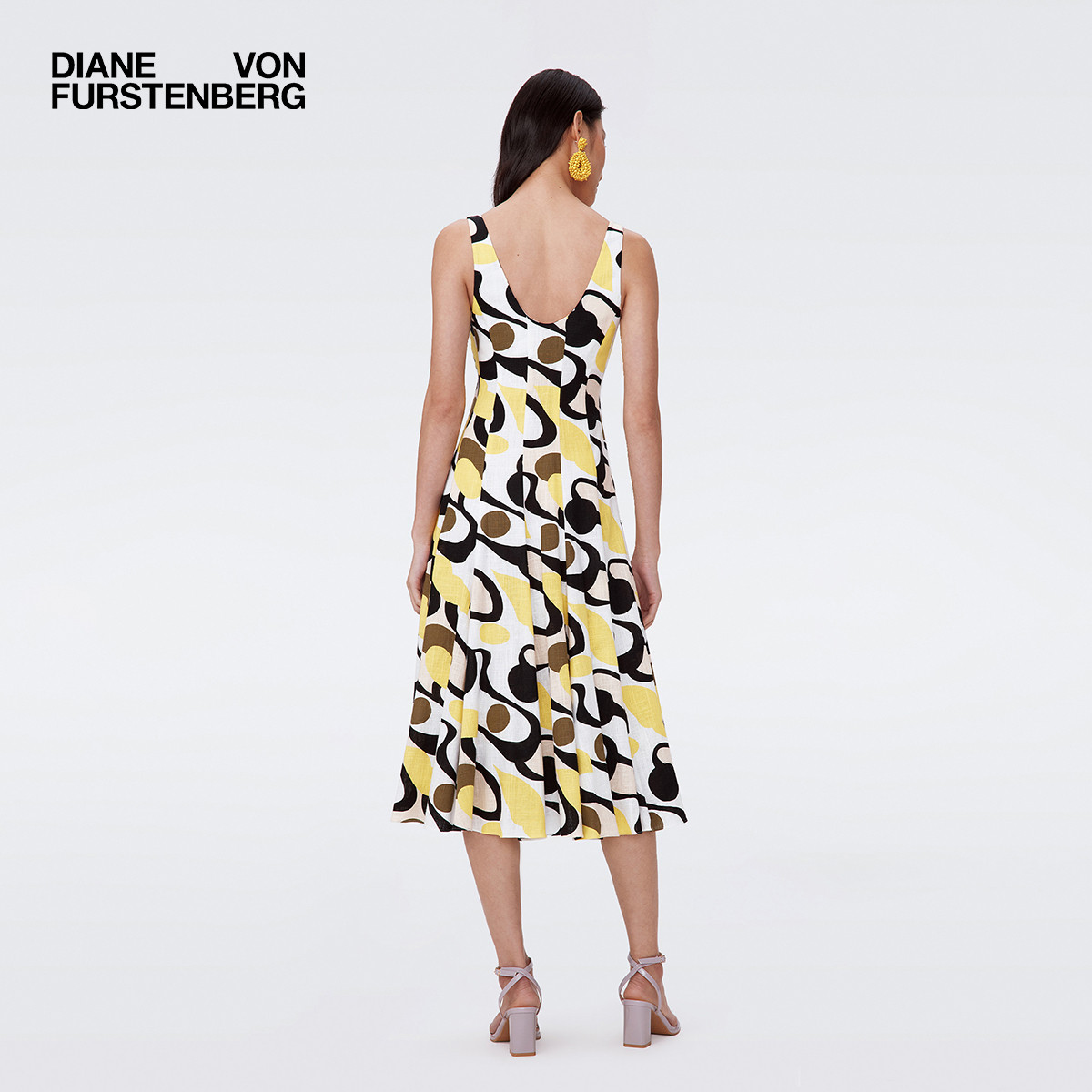 DVF吊带裙黄色碎花裙宽肩散摆连衣裙DS2S052