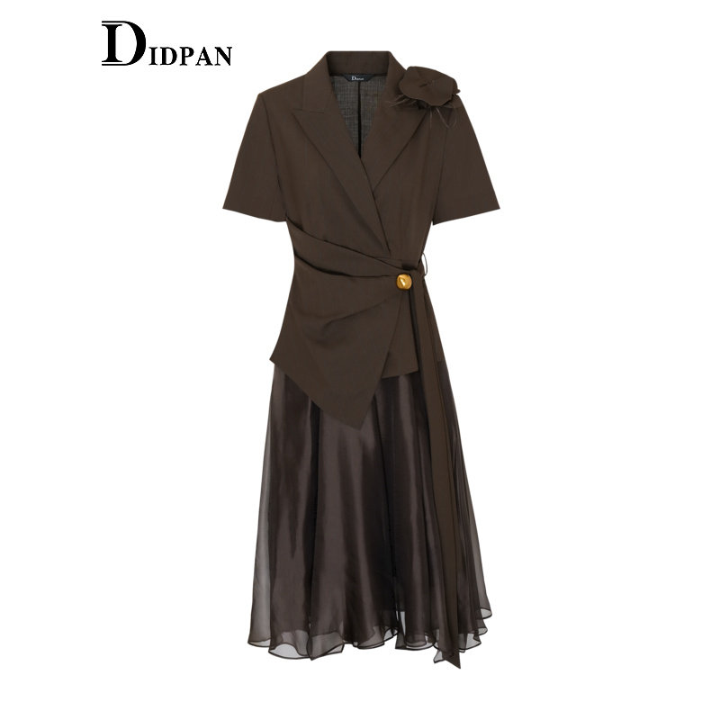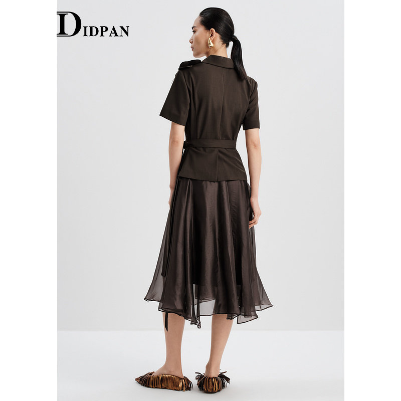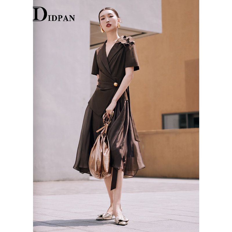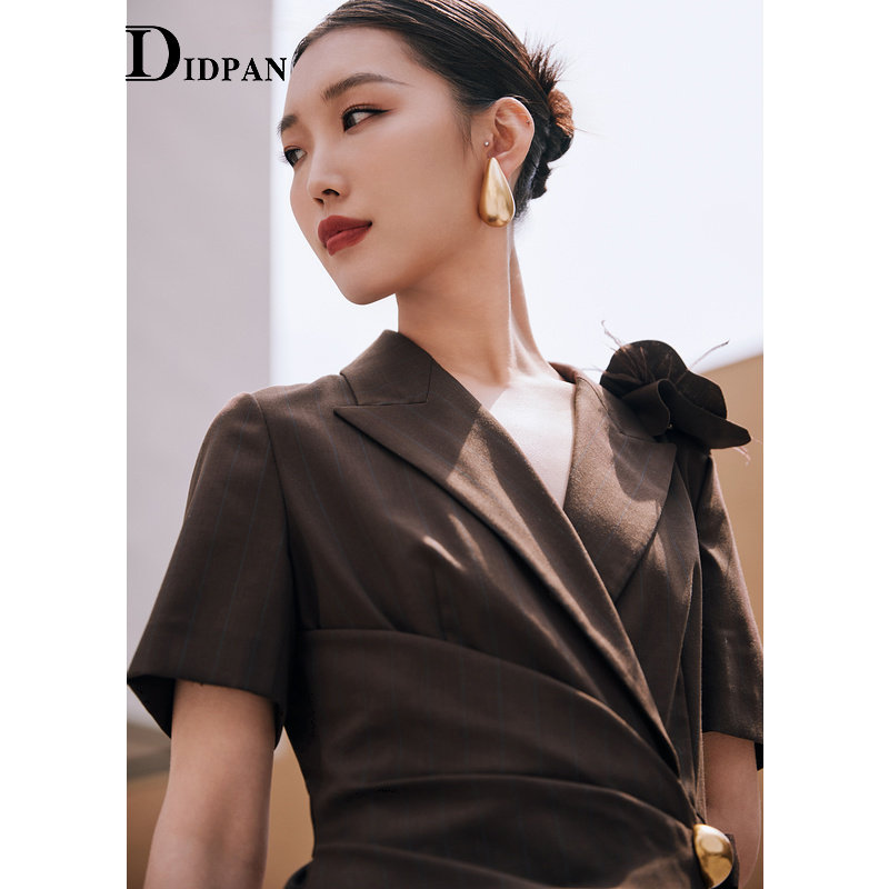 场合西装 IDPAN短袖 商务通勤正式 新款 领气质裙子女 连衣裙夏季