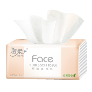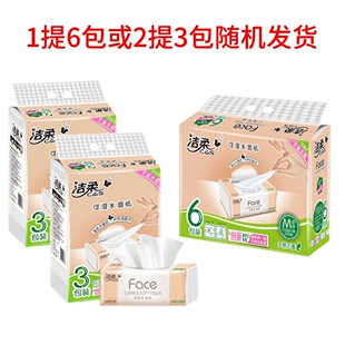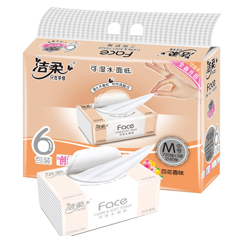 120抽可湿水面巾纸餐巾纸6包提装 洁柔抽纸 3层百花香家用无香中码