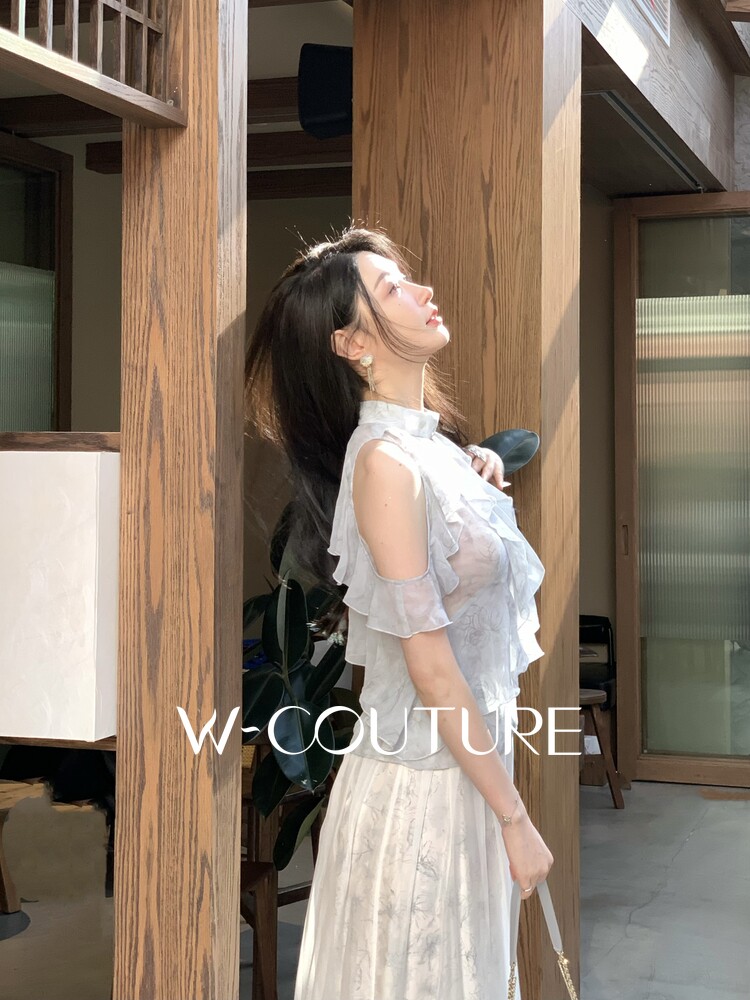 波浪百褶 柔美 挂脖设计背心上衣 女人味 春和景明Wcouture原创