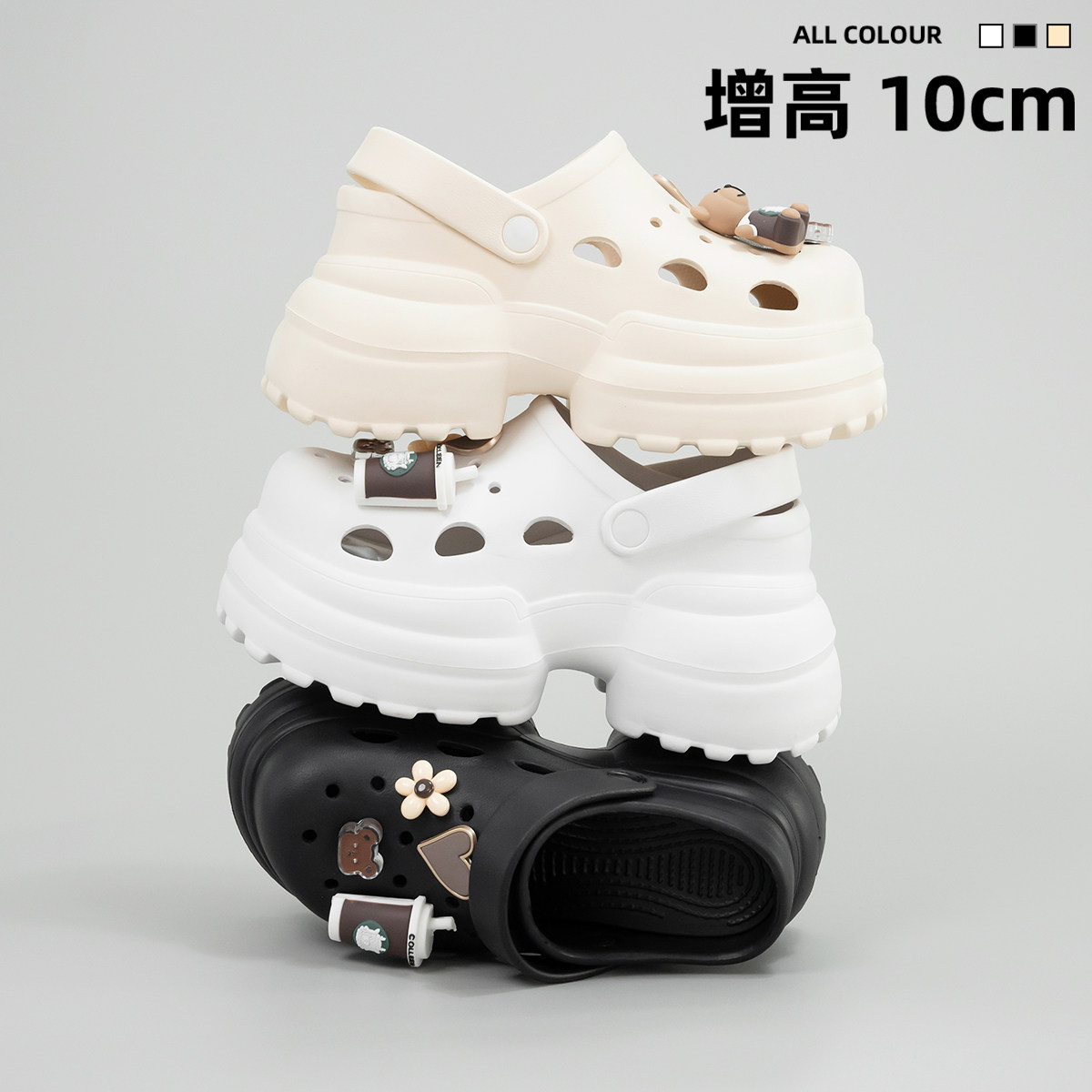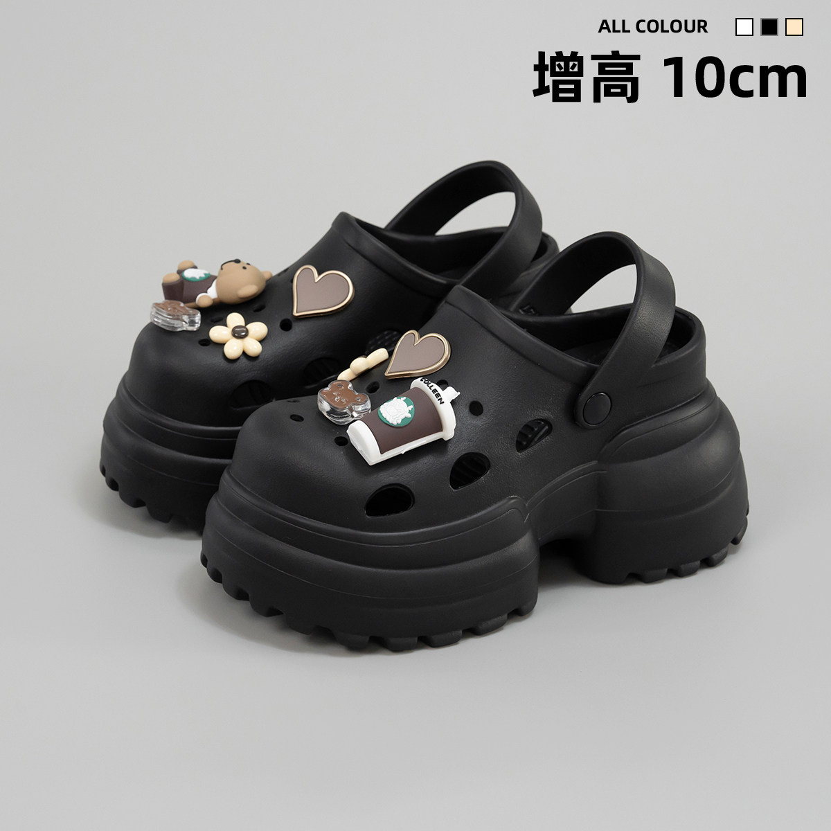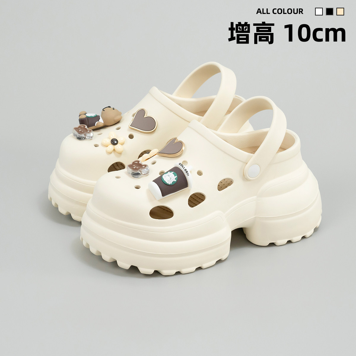 外穿厚底透气两穿拖鞋 夏季 防滑沙滩星巴克 女款 10CM增高跟洞洞鞋