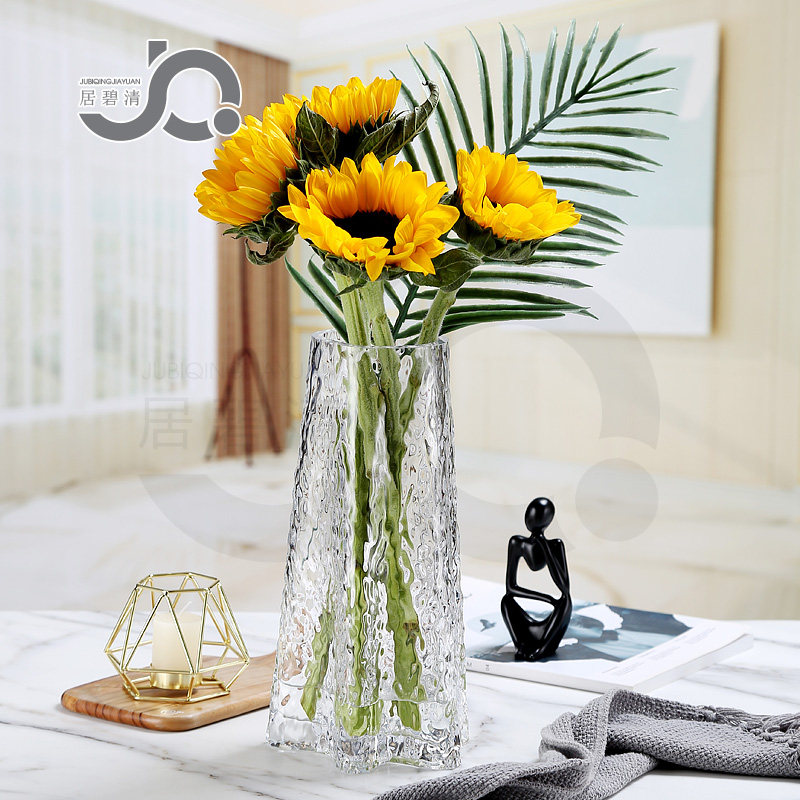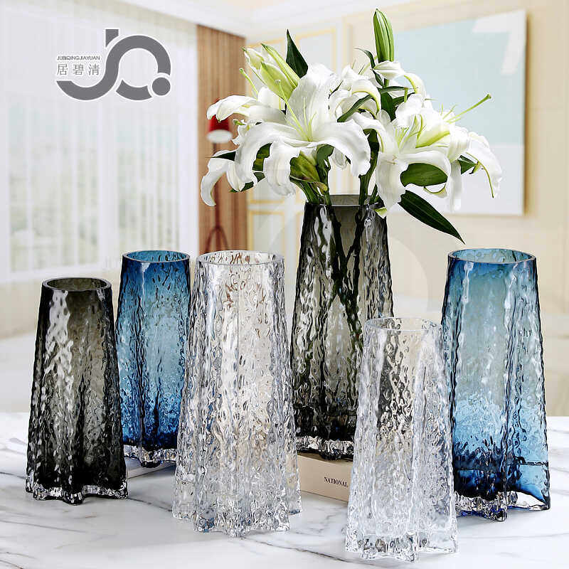 花瓶摆件客厅插花冰川玻璃透明轻奢高级感百合玫瑰水养鲜花专用高