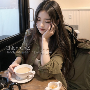 迟恩Chien 上衣初秋老钱风正肩收腰翻领外套女 复古做旧牛仔衬衫