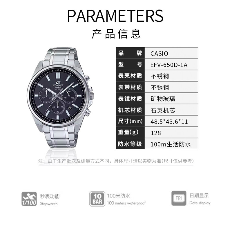 edifice黑暗之心商务防水非机械石英表卡西欧手表男EFV 650D